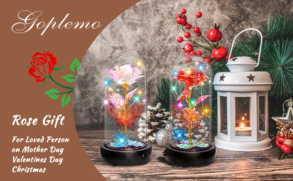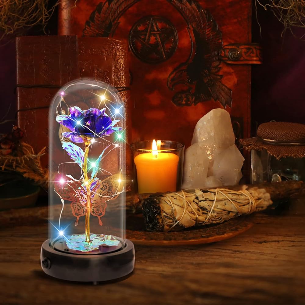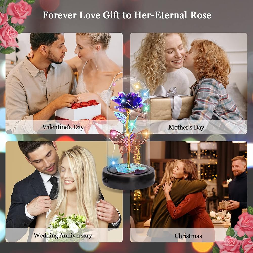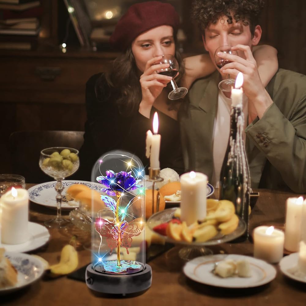 💝هدية وردة زجاجية أبدية في قبة زجاجية، ديكور فراشة + صندوق موسيقى + ضوء LED + جهاز تحكم عن بعد + حزمة هدية. 🎁 وردة صناعية للنساء المقاس: 4.1*9 بوصة (10.5*23 سم)