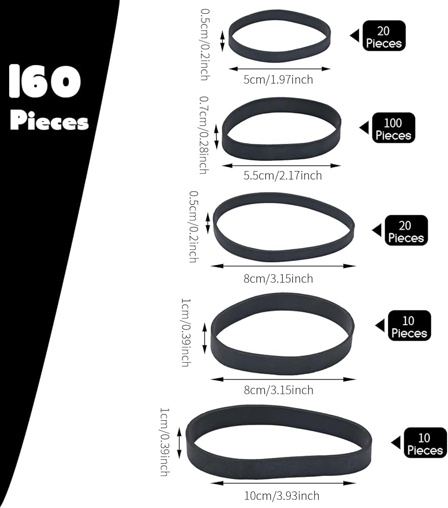 【5 مقاسات】إجمالي 60 رباط مطاطي أسود، 5 × 0.5 سم/ 1.97 × 0.2 انش، 5.5 × 0.7 سم/ 2.17 × 0.28 انش، 8 × 0.5 سم/ 3.15 × 0.2 انش، 8 × 1 سم/ 3.15 × 0.39 انش، 10 × 10 × سم / 3.94 × 0.39 انش، يتم تنظيم الأساور حسب المقاس في الحقائب. عندما تحتاج، لن تضطر إلى المرور عبر مجموعة من الأربطة المطاطية لاختيار المقاس المناسب.
