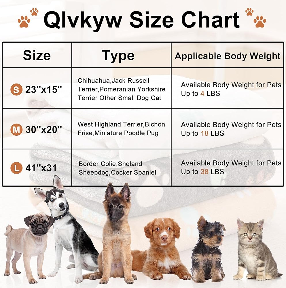 【بطانية للحيوانات الأليفة】تناسب نوع الحيوانات الأليفة: مقاس صغير 23 × 16 بوصة (مناسبة للقطط والجراء والكلاب الصغيرة وأي حيوانات صغيرة أخرى)؛ مقاس متوسط 30 × 20 بوصة (مناسب للقطط والجراء والكلاب المتوسطة والحيوانات الأخرى)؛ مقاس كبير 41 × 31 بوصة (مناسبة لـ القطط والكلاب والحيوانات)