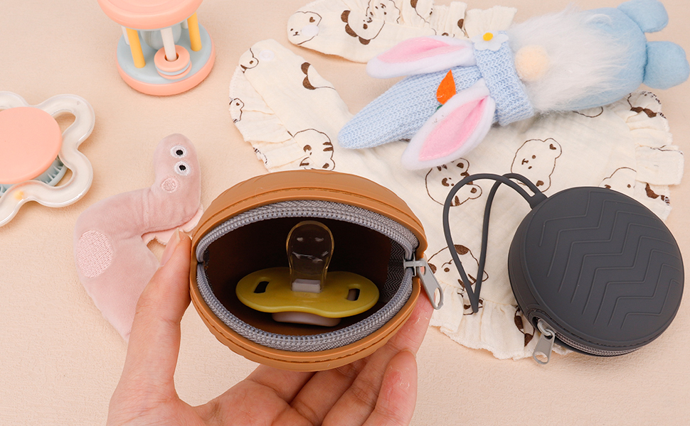 جودة عالية - صندوق اللهاية الخاص بنا مصنوع من سيليكون عالي الجودة ومتين صالح للطعام، وهو ناعم ومرن لضمان سلامة الطفل. يمكن غسل هذه المادة بشكل متكرر وسهلة التنظيف، والسحاب عالي الجودة أكثر متانة، وليس من السهل فقدان العناصر المخزنة