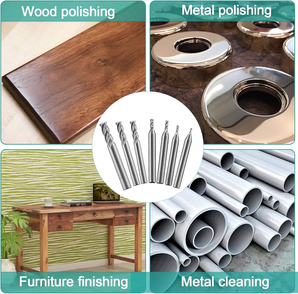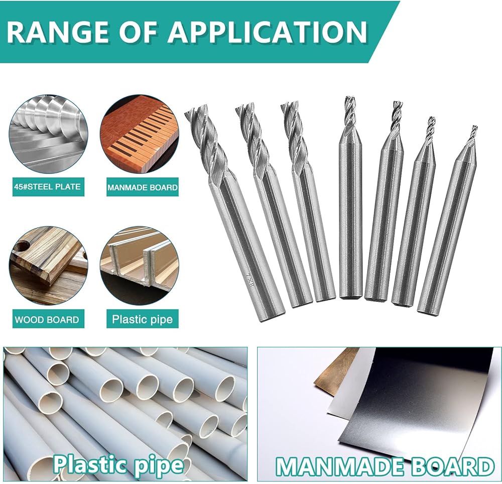 The drill end mill has U-shaped grooves for quick chip removal. A set contains 7 different sizes of cnc cutting bits to meet your needs.