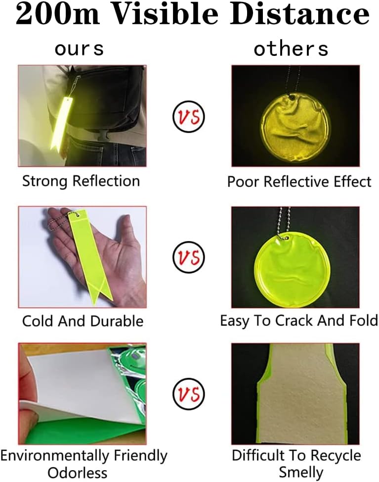Good warning effect: Wear our safety reflex key chain, strongly reflect the visible distance of 200 meters, avoid sudden danger, protect your travel safety