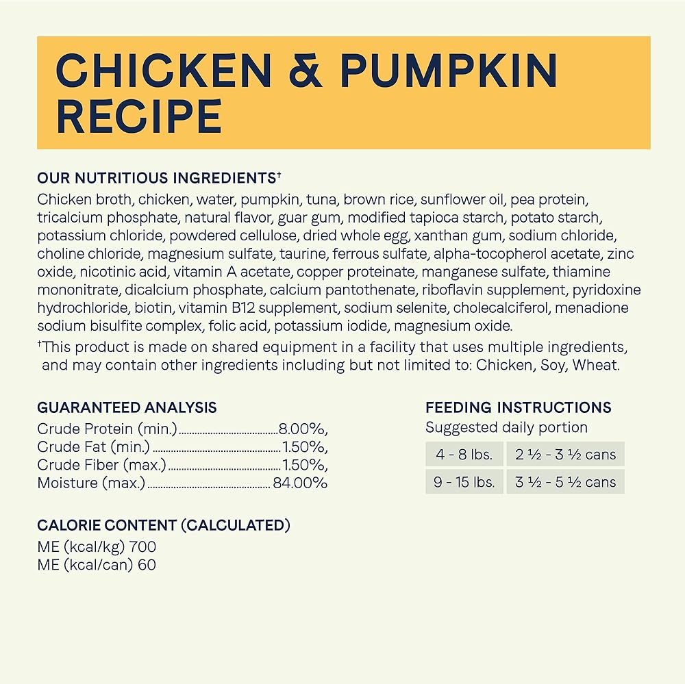 • Canidae Balanced Bowl Chicken & Pumpkin Recipe is formulated to meet the nutritional levels established by the AAFCO Cat Food Nutrient Profiles for maintenance