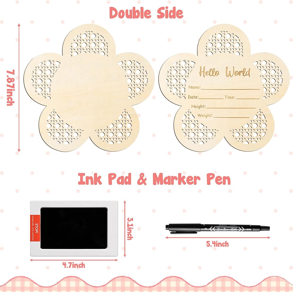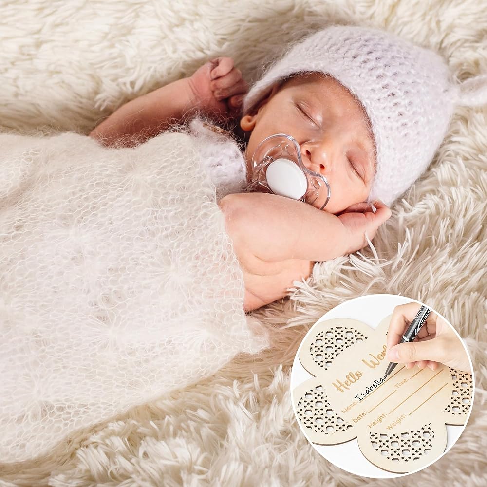 MARKER PEN: Our baby birth announcement sign includes a black marker for effortlessly recording newborn information. Its ease of use ensures clear and prominent writing, perfect for newborn photo props, birth announcements, and hospital birth signs.