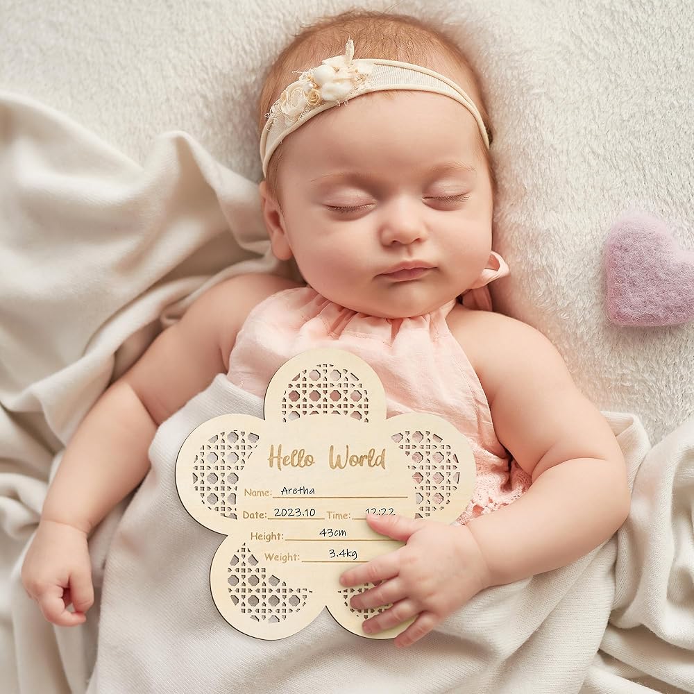 NEWBORN ANNOUNCEMENT SIGN: Embrace the precious arrival of a new life with our versatile newborn announcement sign. This beautifully designed piece not only shares the joy of this special moment with family and friends but also doubles as a unique prop for capturing unforgettable newborn photos.