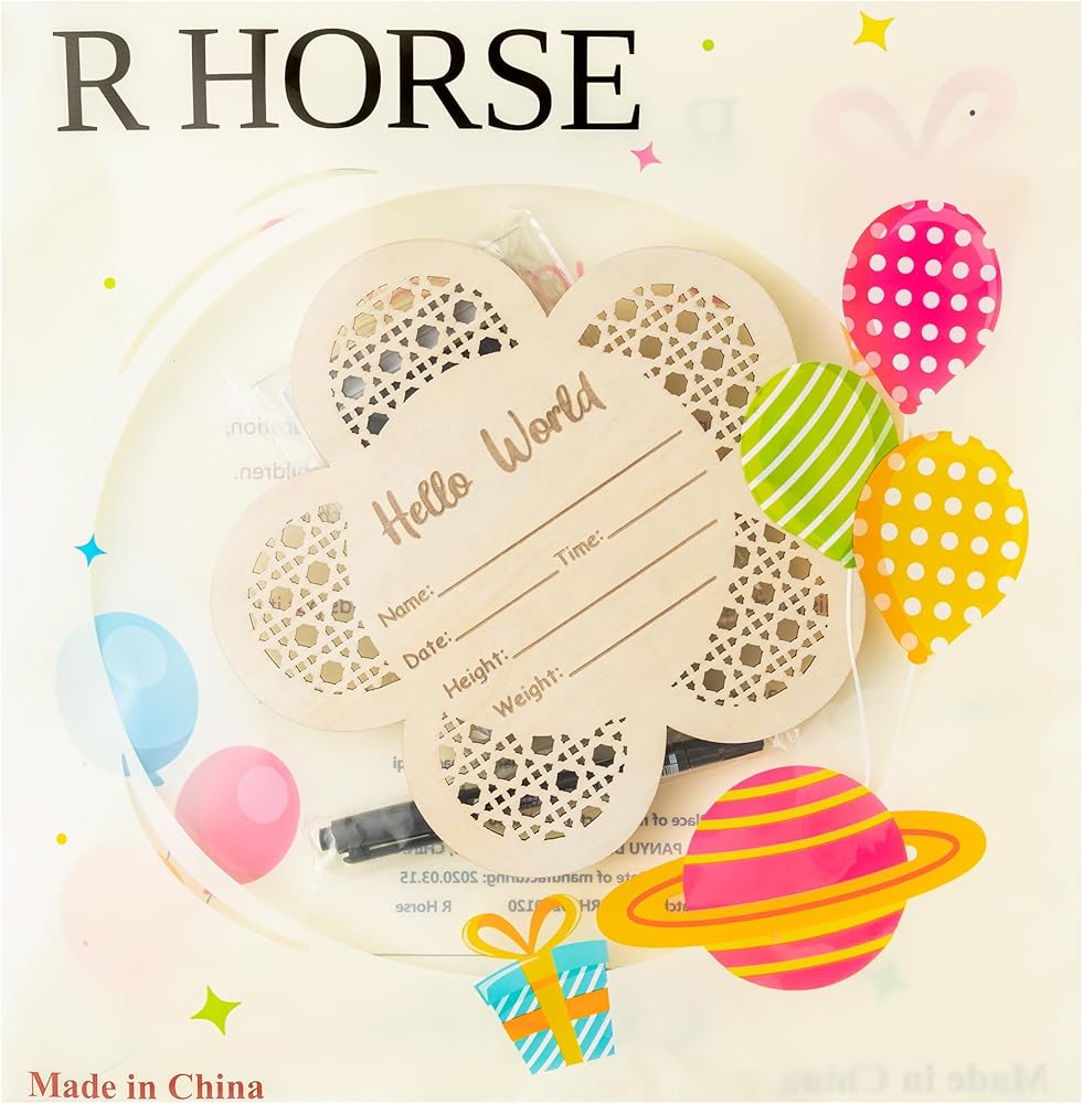 R HORSE لافتة إعلان ولادة الطفل مع وسادة حبر زهرة الروطان مرحباً بالعالم علامة اسم حديثي الولادة مع قلم ماركر منقوش من الخشب علامة اسم الطفل بوهو ديكور جدار الحضانة صور الدعائم هدايا للأولاد والبنات