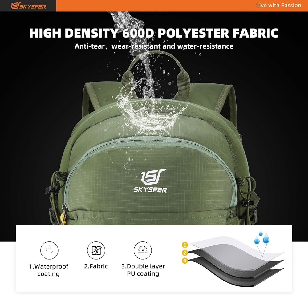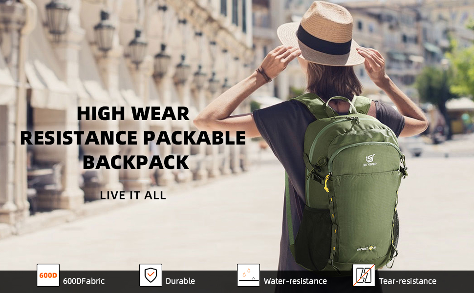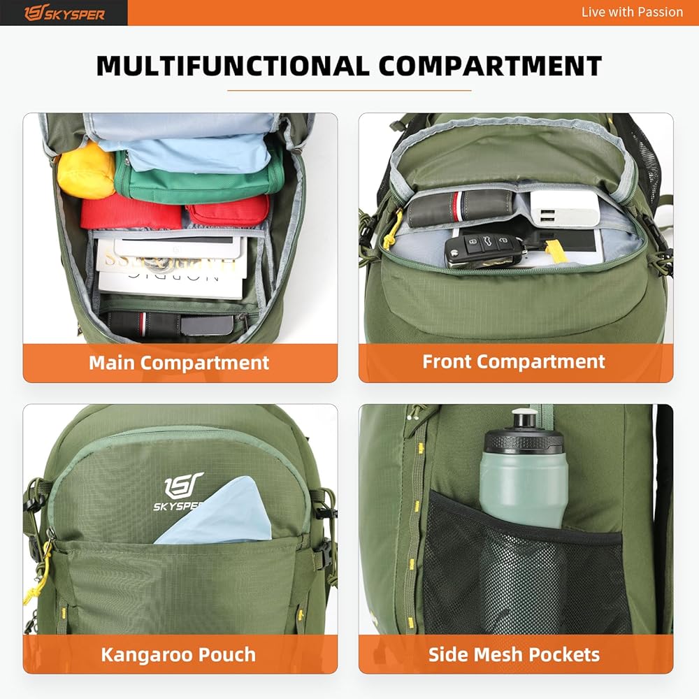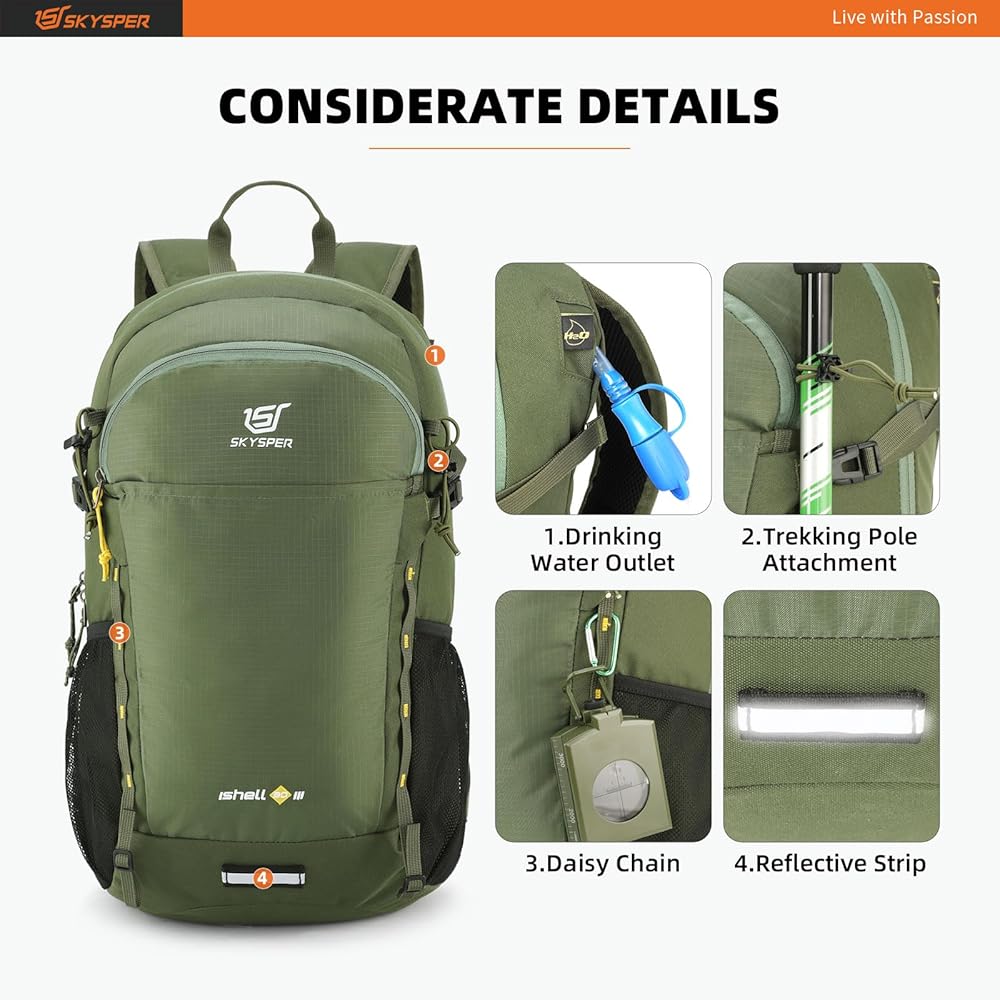 حقيبة ظهر SKYSPER للمشي لمسافات طويلة سعة 30 لتر خفيفة الوزن وقابلة للتعبئة أثناء السفر حقيبة نهارية مقاومة للماء للمشي لمسافات طويلة للنساء والرجال (ArmyGreen)