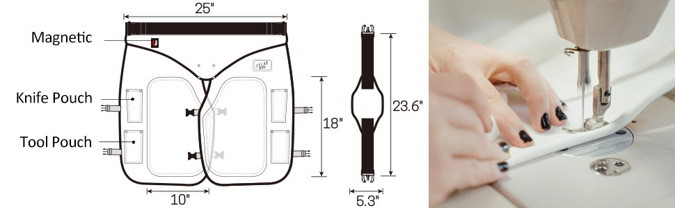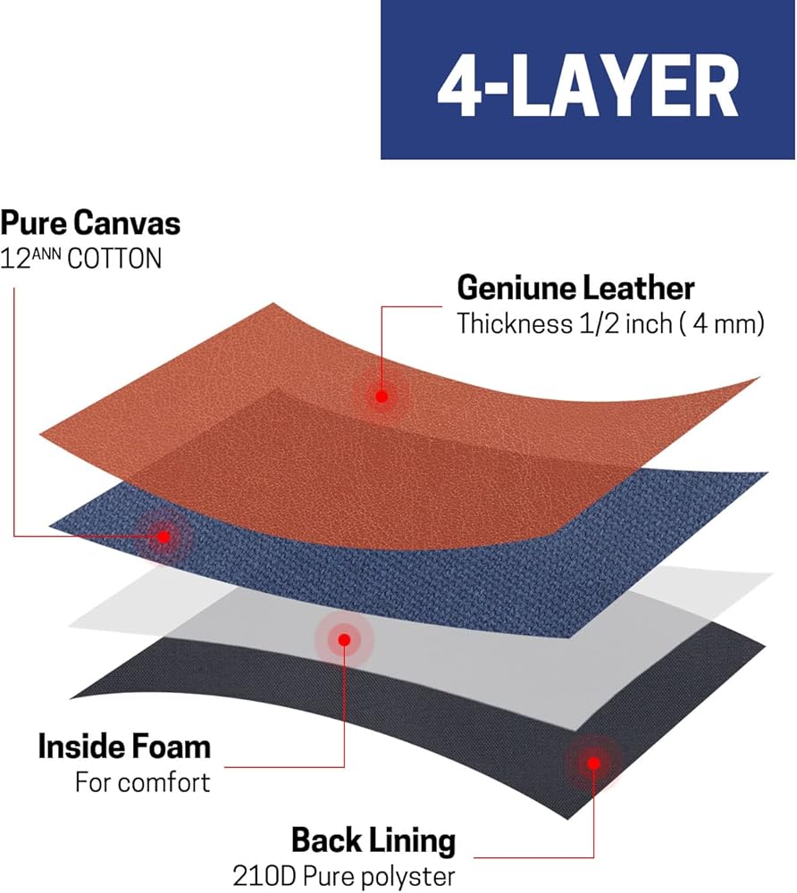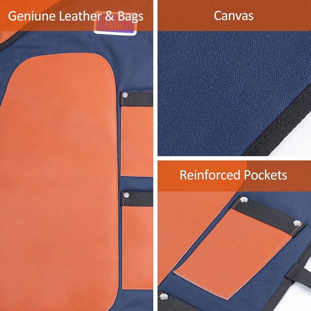 • خياطة ومتينة وتدوم طويلاً: مصنوعة يدويًا من الجلد الطبيعي وقماش مقاوم للماء معالج بالشمع 12 آن. كل مريلة شديدة التحمل مصنوعة يدويًا بخياطة معززة ومسامير فولاذية لضمان قوة لا تتزعزع.