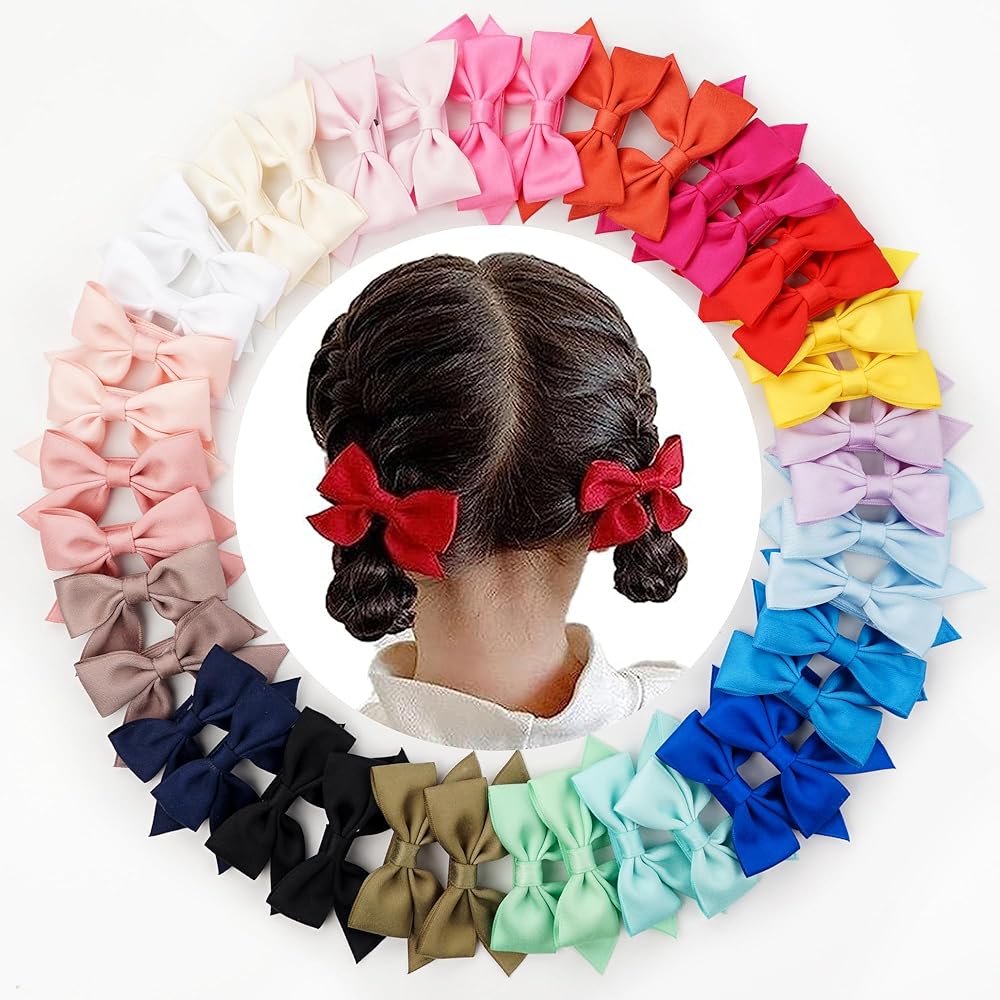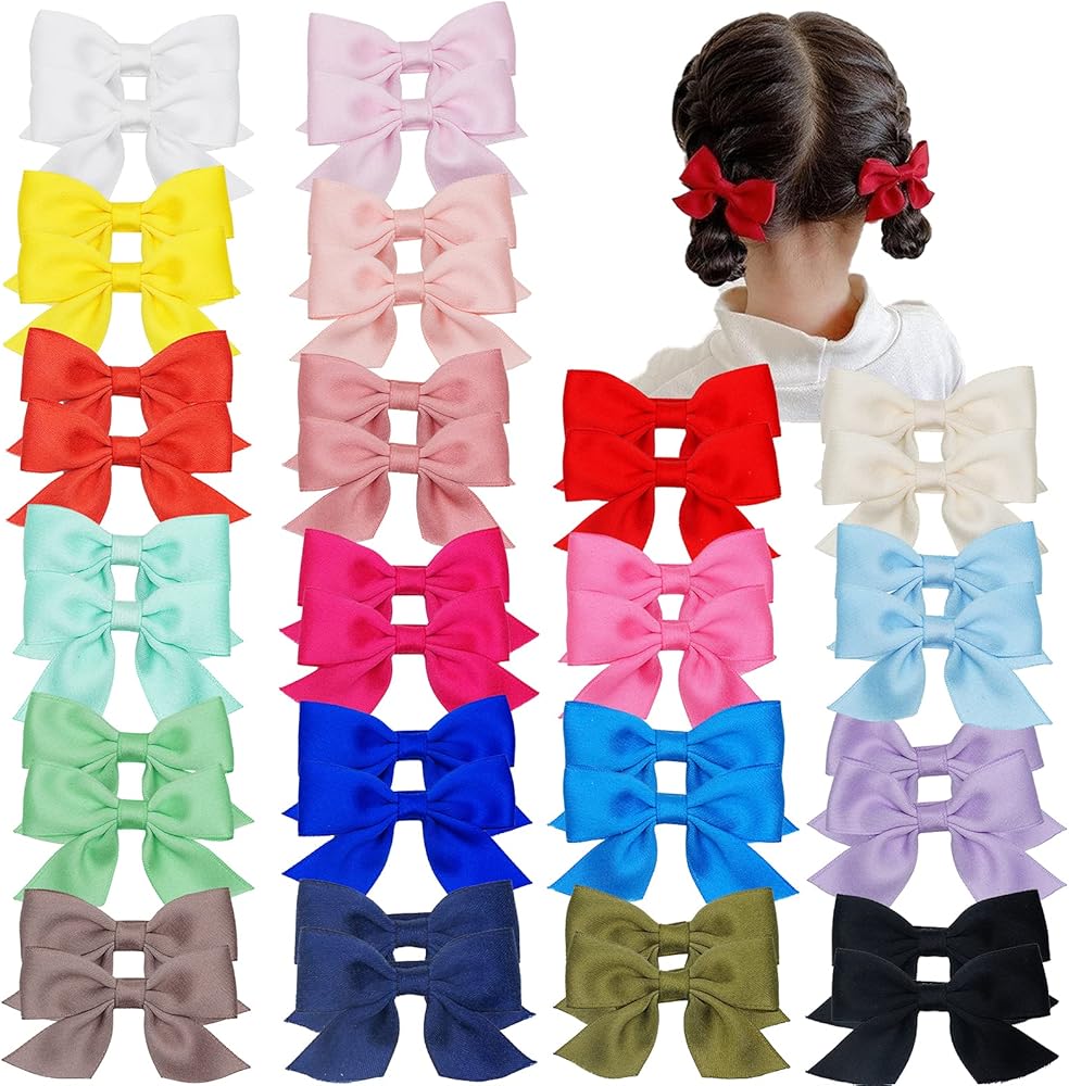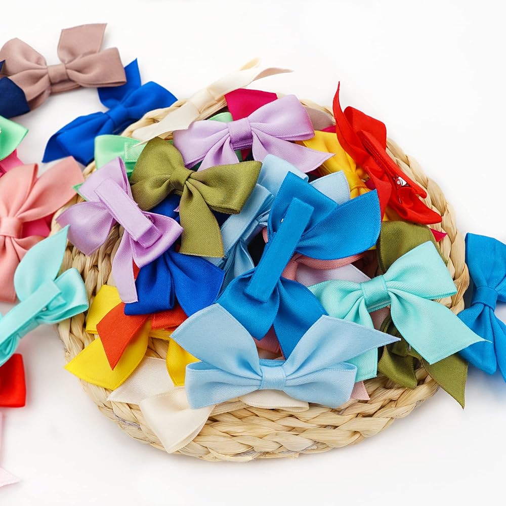 The item is a set of 20 different Colors boutique hair clips, which is made of durable soft Top quality Polyester cotton ribbon and metal clips full covered with ribbon,