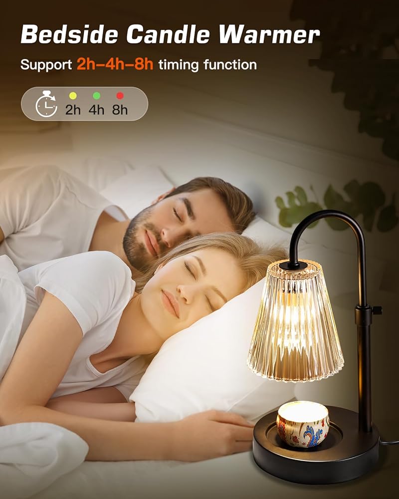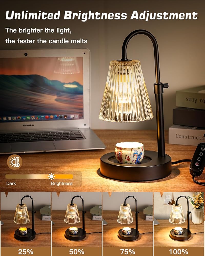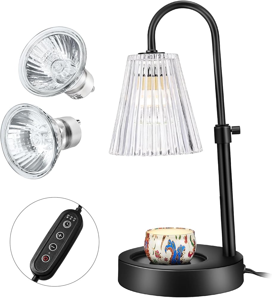 مصباح تدفئة الشموع من أنبرو مع لمبتين، مصباح تدفئة الشموع الكهربائية مع مؤقت، ذوبان الشمع القابل للتعديل للارتفاع للشموع المعطرة، حامل الشموع المعطرة لجميع أحجام شموع الجرة