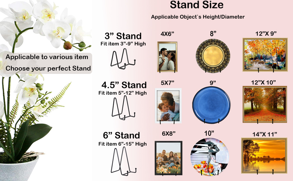 استخدام واسع: حاملات الإطارات المعدنية هذه مثالية لحمل اللوحات والصور الفوتوغرافية والشهادات والكتب والصور المؤطرة والفنون والحرف اليدوية والتقويمات المكتبية والمزيد. يمكن استخدامها كديكور للمنزل والمكتب، وعرض العناصر المفضلة لديك على سطح المكتب أو الرفوف . كما أنها مثالية للعروض الفنية وعروض الكتب.