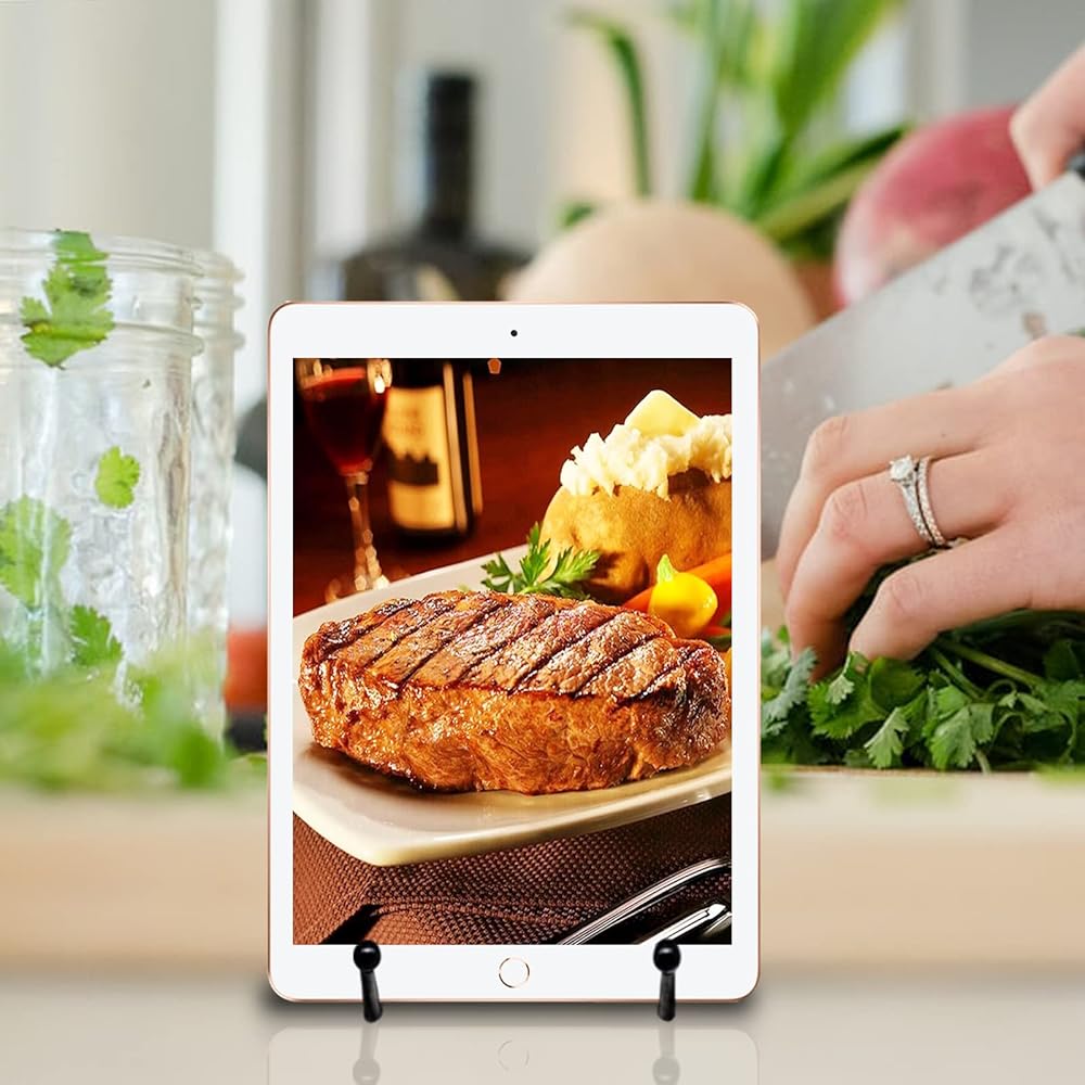 تصميم بسيط ومظهر أنيق: تم تشطيب حامل اللوحة هذا بزوايا دائرية وبنية بسيطة، والسلك المعدني نظيف وأنيق، وارتفاع وزاوية الحامل مثاليان لعرض أنيق. المعدن الأسود ليس متينًا فحسب، بل يضيف أيضًا لمسة من الأناقة.
