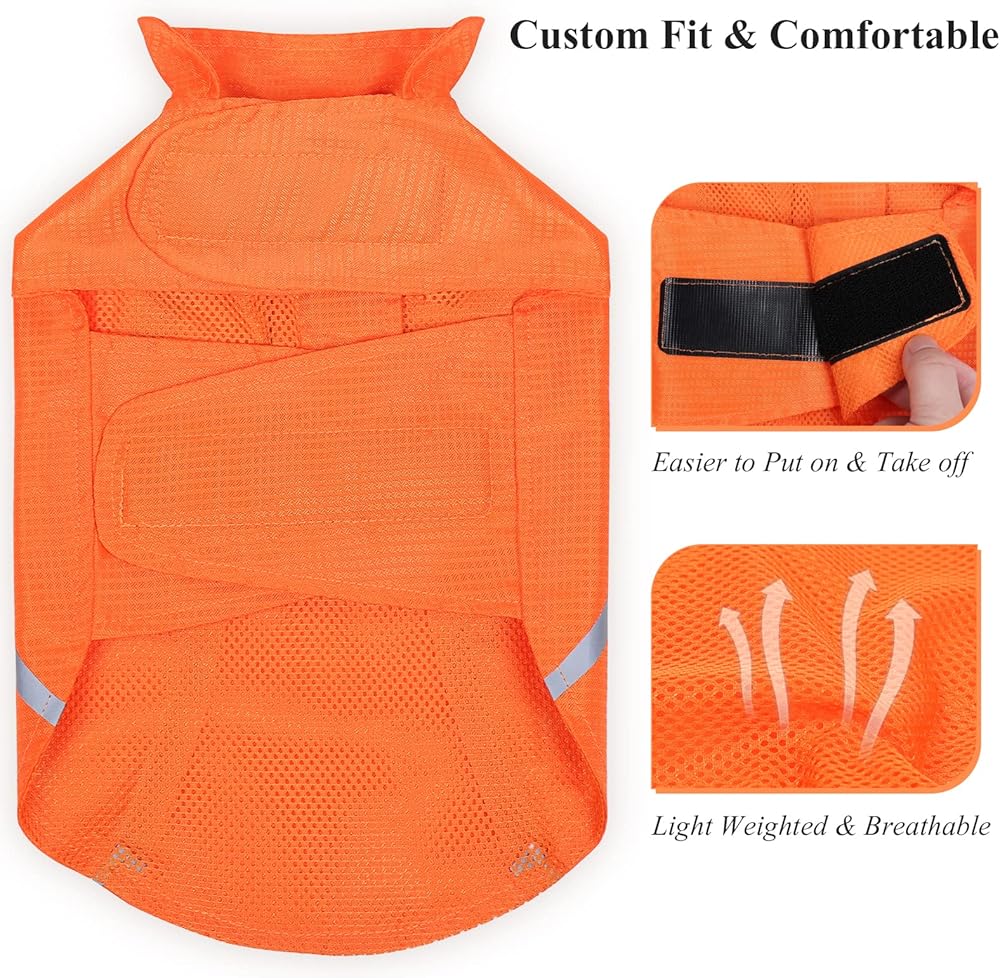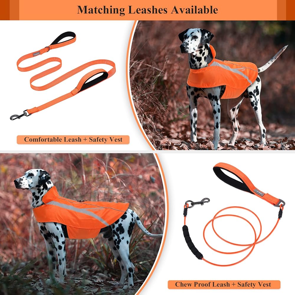 【رؤية عالية】مع اللون البرتقالي أو الأخضر الفلوريسنت الساطع والزخارف العاكسة الأوسع، تجعل سترة أمان الكلاب VIVAGLORY كلبك مرئيًا في النهار وفي ظروف الإضاءة المنخفضة. يوفر رؤية عالية لإبقاء جروك بعيدًا عن أي حوادث محتملة أثناء المشي والمشي لمسافات طويلة والصيد