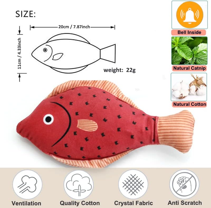 لعبة Catnip لعيد ميلاد القطط: لعبة قطط السمك مصنوعة من مادة الفلانليت الناعمة، متينة بما يكفي لضمان عدم مضغها بسهولة من قبل قططك الصغيرة. مليئة بالكمية المناسبة من النعناع البري العضوي، وهي صحية وآمنة لقططك، هذه اللعبة يمكن أن تجعل قططك تشعر بالإثارة والسعادة عند اللعب بها. النعناع البري الطبيعي مفيد أيضًا للقطط لتعزيز عملية الهضم وضبط المشاعر.