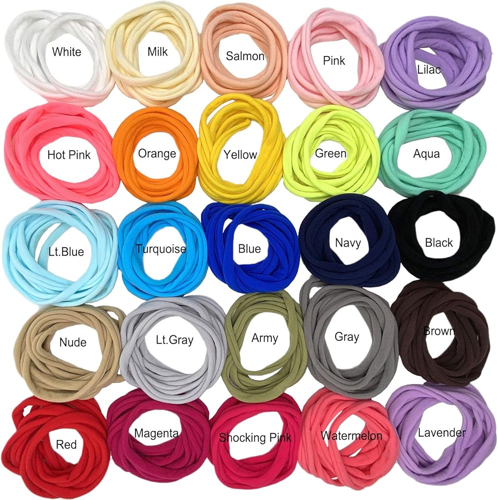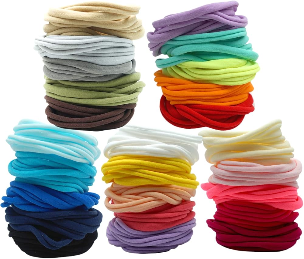 200 قطعة 25 لونًا عالية التمدد اصنعها بنفسك عصابات رأس نايلون عارية مرنة لأربطة شعر الأطفال الرضع ربطات الرأس حلقات الأذن ربطات العنق والمشاريع الحرفية والأنشطة الرياضية النسائية