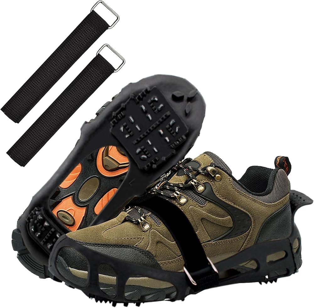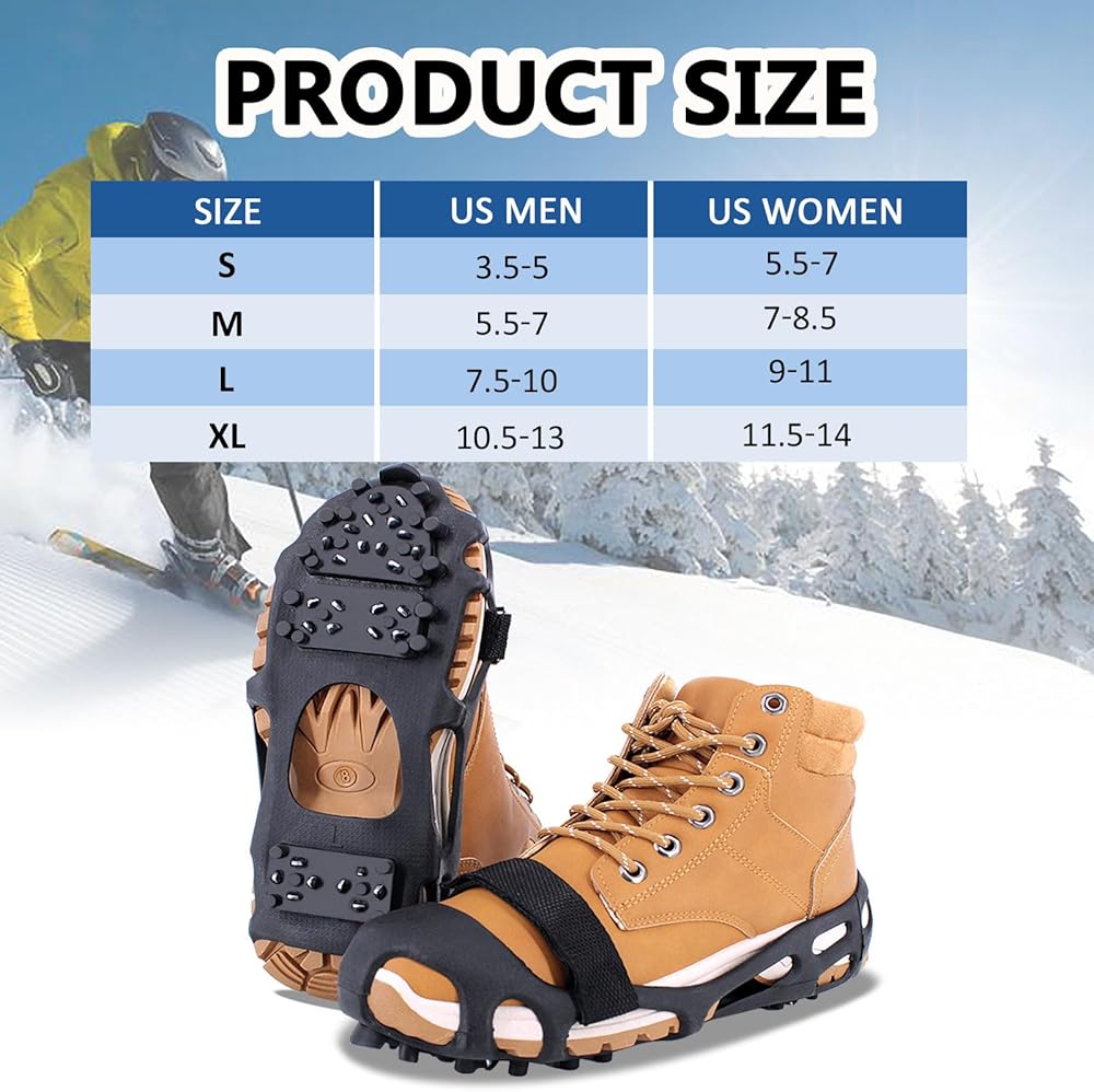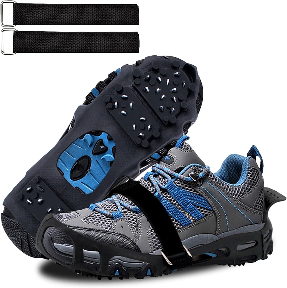 MOVOYEE Ice Cleats for Shoes and Boots Women Men Youth Kids,Crampons for Hiking Boots Climbing Mountaineering Fishing Trail Running Jogging,Silicone Rubber Stainless Steel Traction Non Slip Gripper Spikes for Shoes On Ice Snow Winter Walking,Fits Most Kinds of Footwear,Shoes,Boots,Sneakers or Casual Shoes