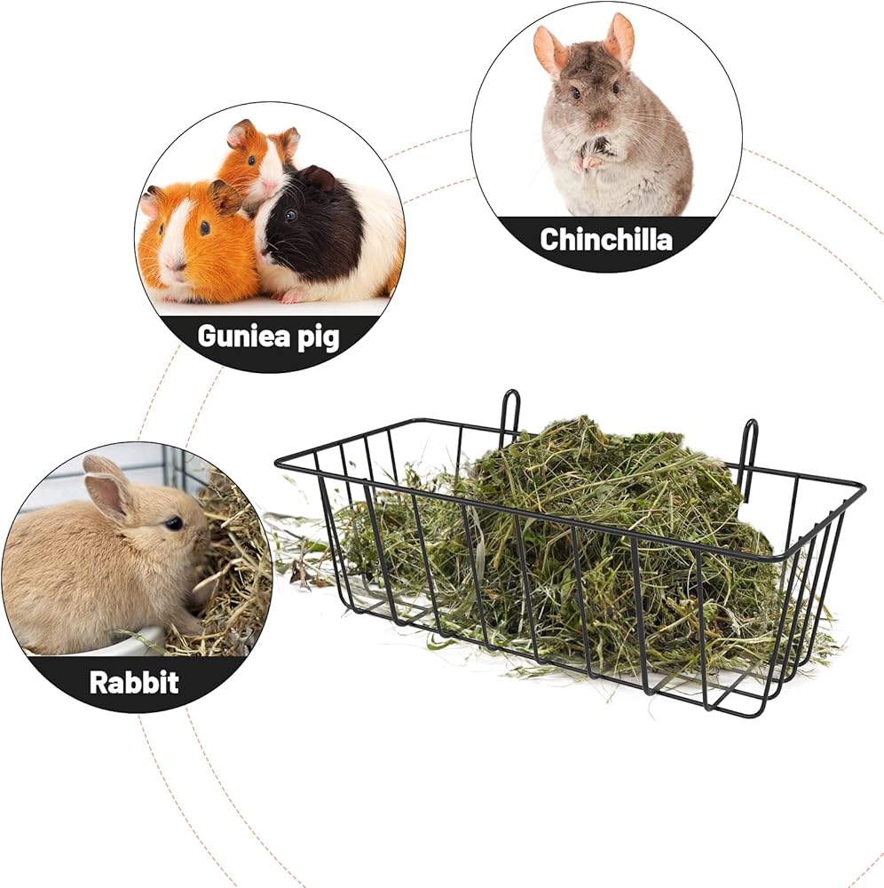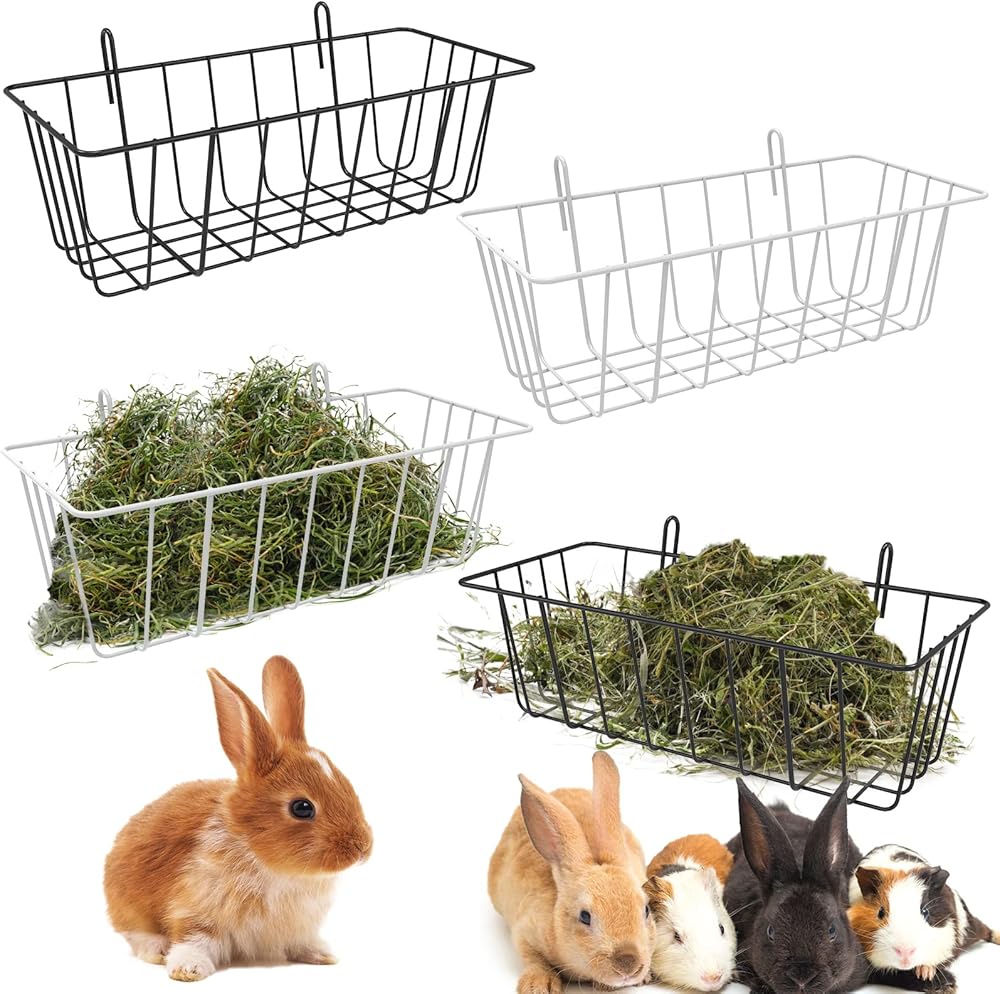 بيلوبي 4 قطع من وحدة تغذية القش والارانب مع خطافات، وحدة تغذية القش والخنزير الغيني، حامل قش معدني شديد التحمل للارانب والخنزير الغيني والارنب والشنشيلة، مستلزمات الحيوانات الاليفة الصغيرة، 9.1 × 3.9