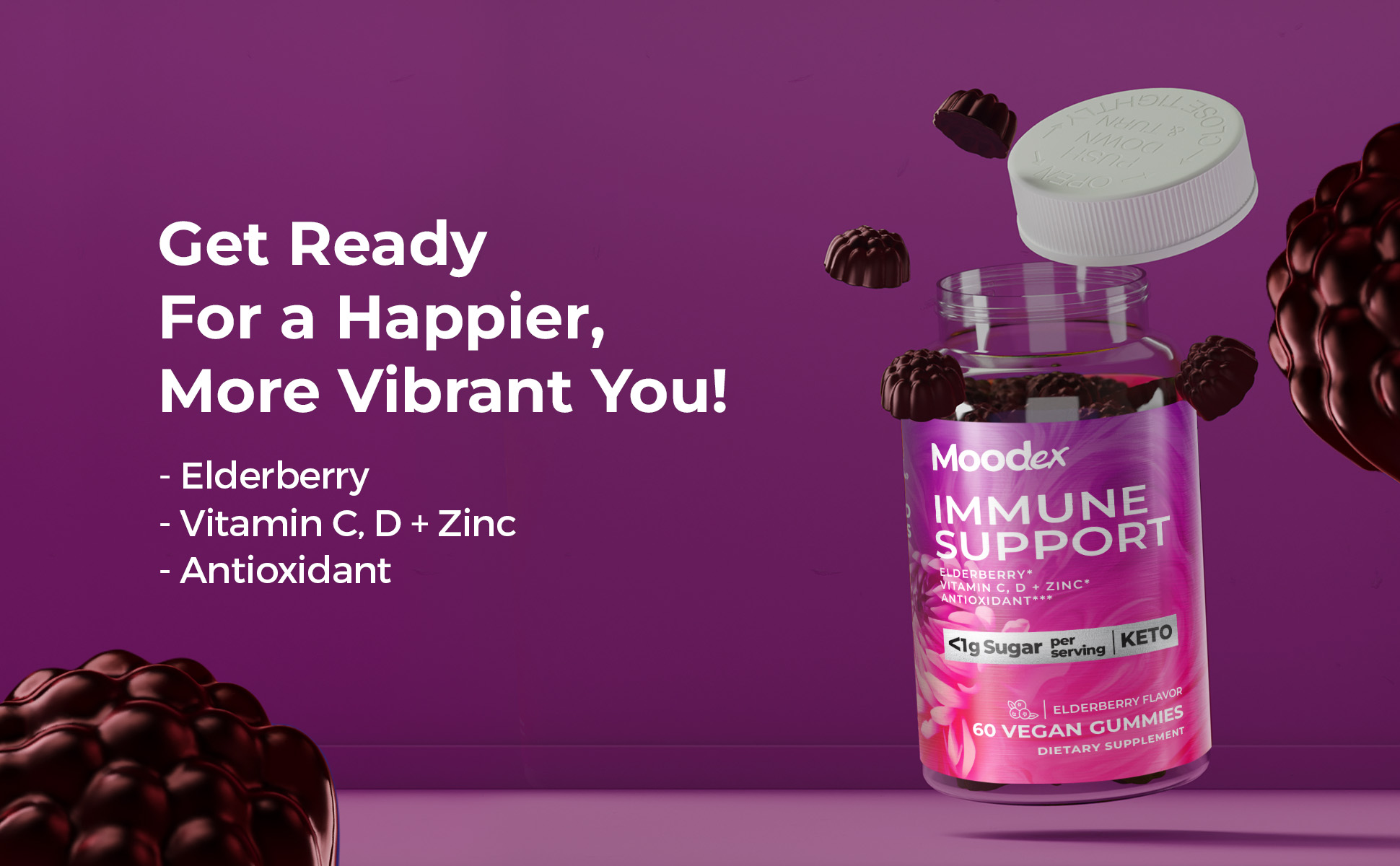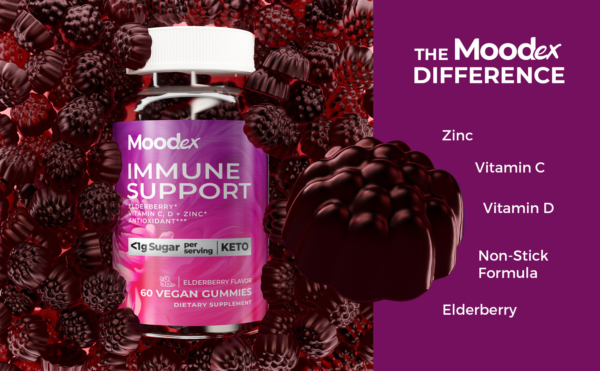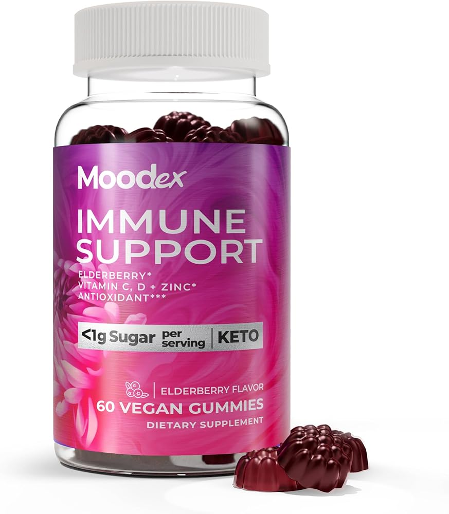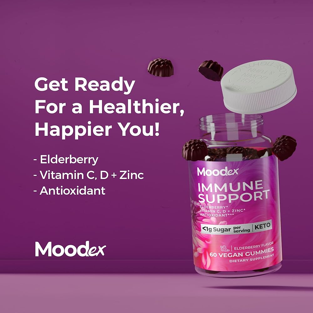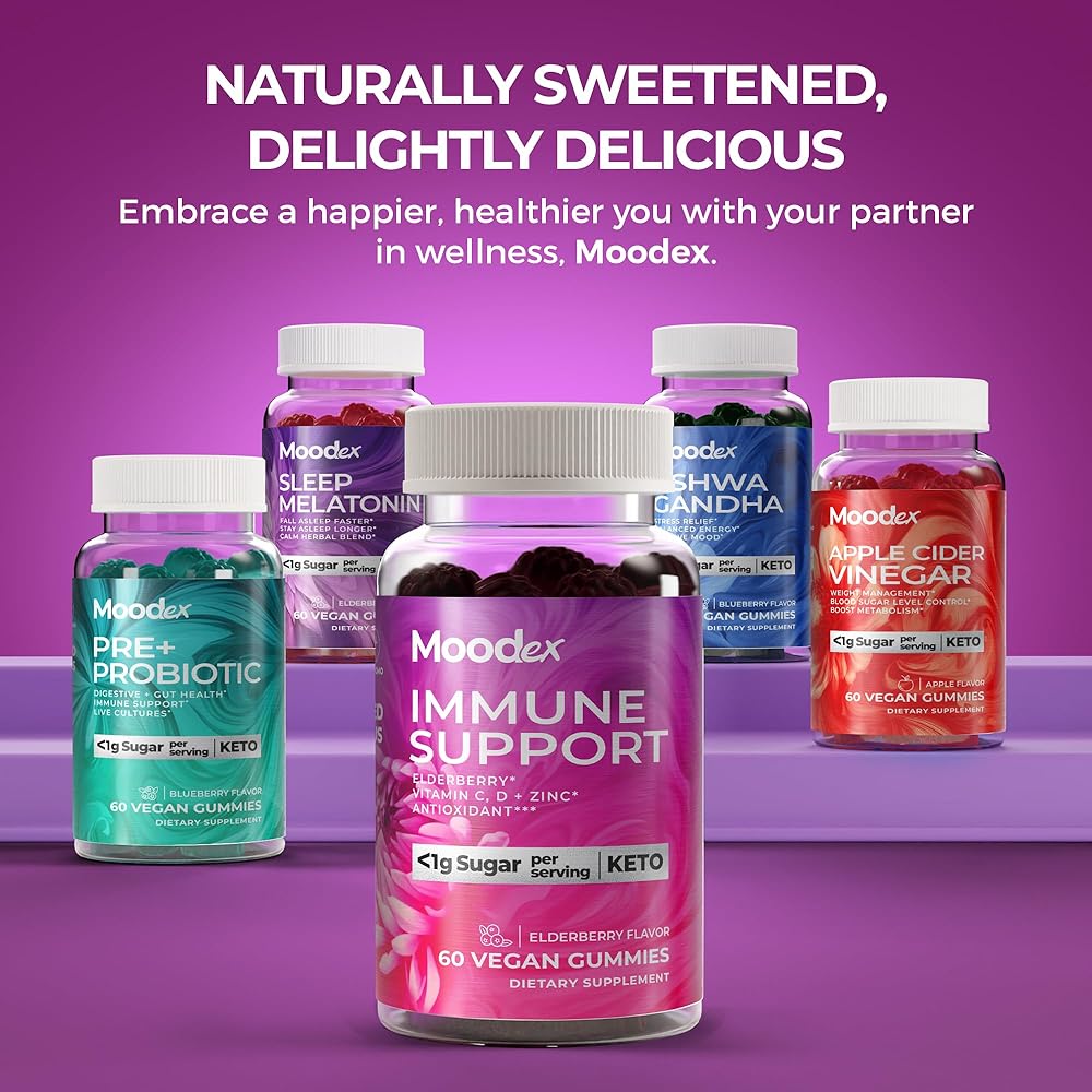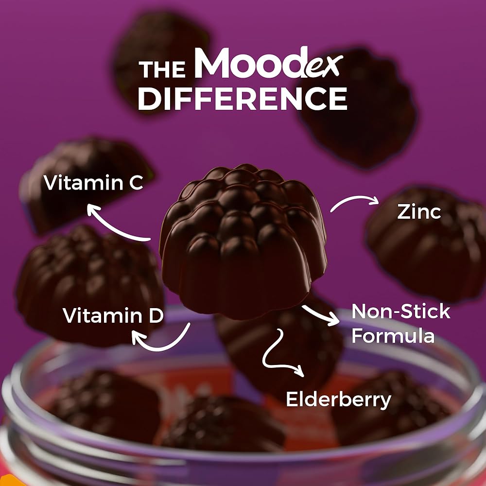 MOODex - علكات دعم المناعة - مكملات نباتية وكيتو منخفضة السكر، للرجال والنساء - مناسبة للأفراد الذين يعانون من عدم تحمل السكر - بحد أقصى 1 جرام سكر لكل 2 علكة - 60 قيراط