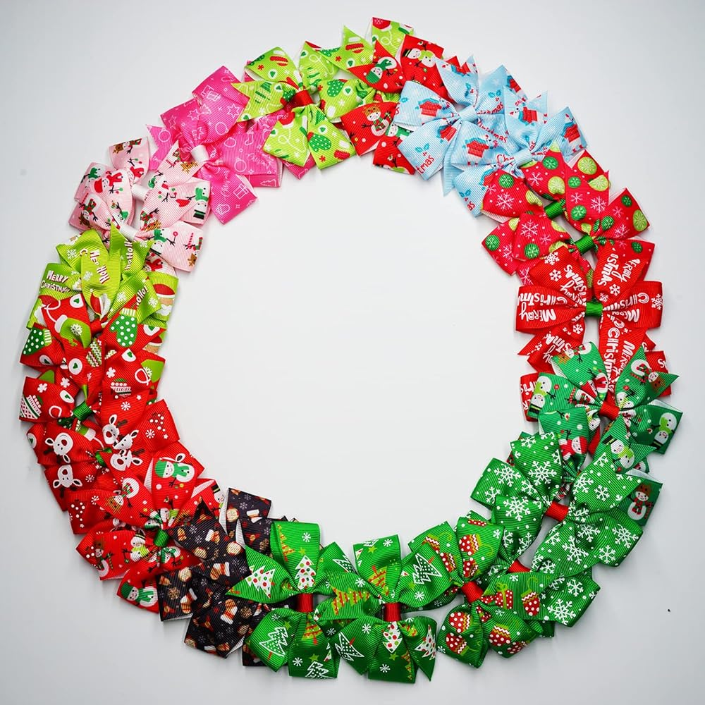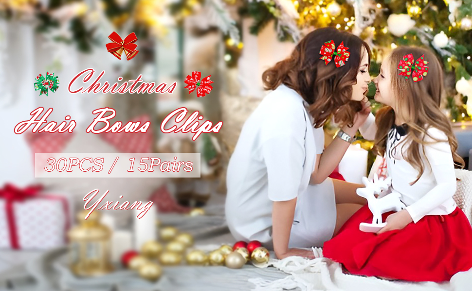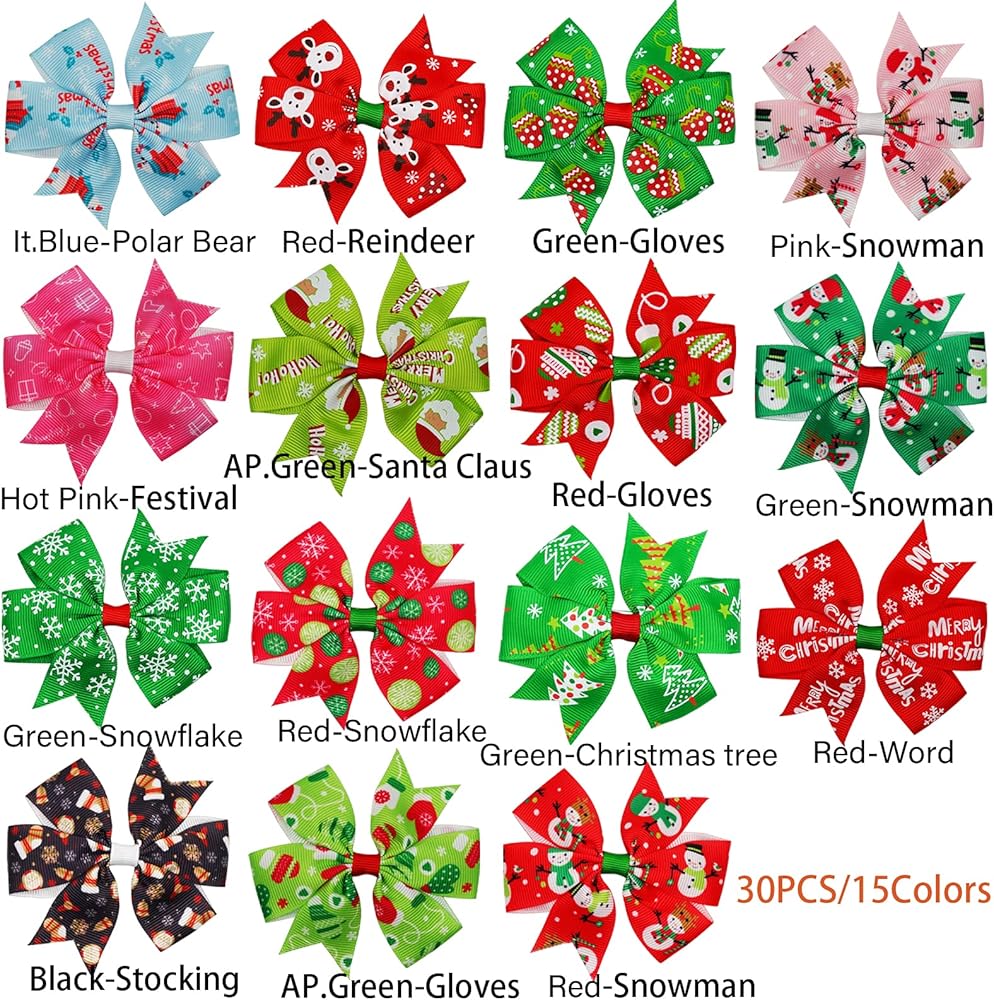 30 قطعة من أقواس شعر عيد الميلاد، yxiang 3 بوصة من الحرير المضلع، مشابك شعر التمساح، إكسسوارات الشعر، هدايا عيد الميلاد للفتيات الصغيرات والأطفال الصغار في أزواج