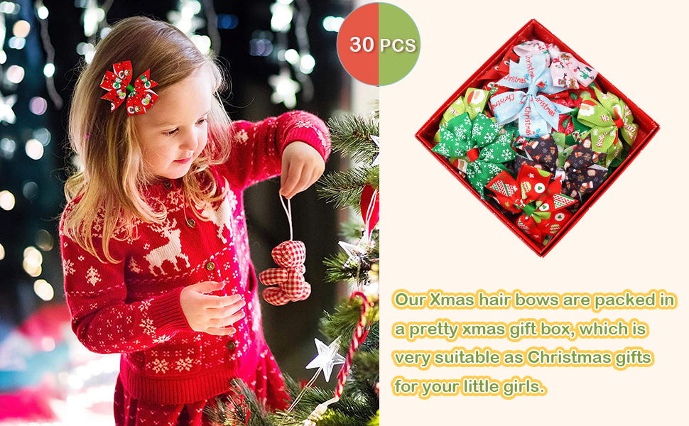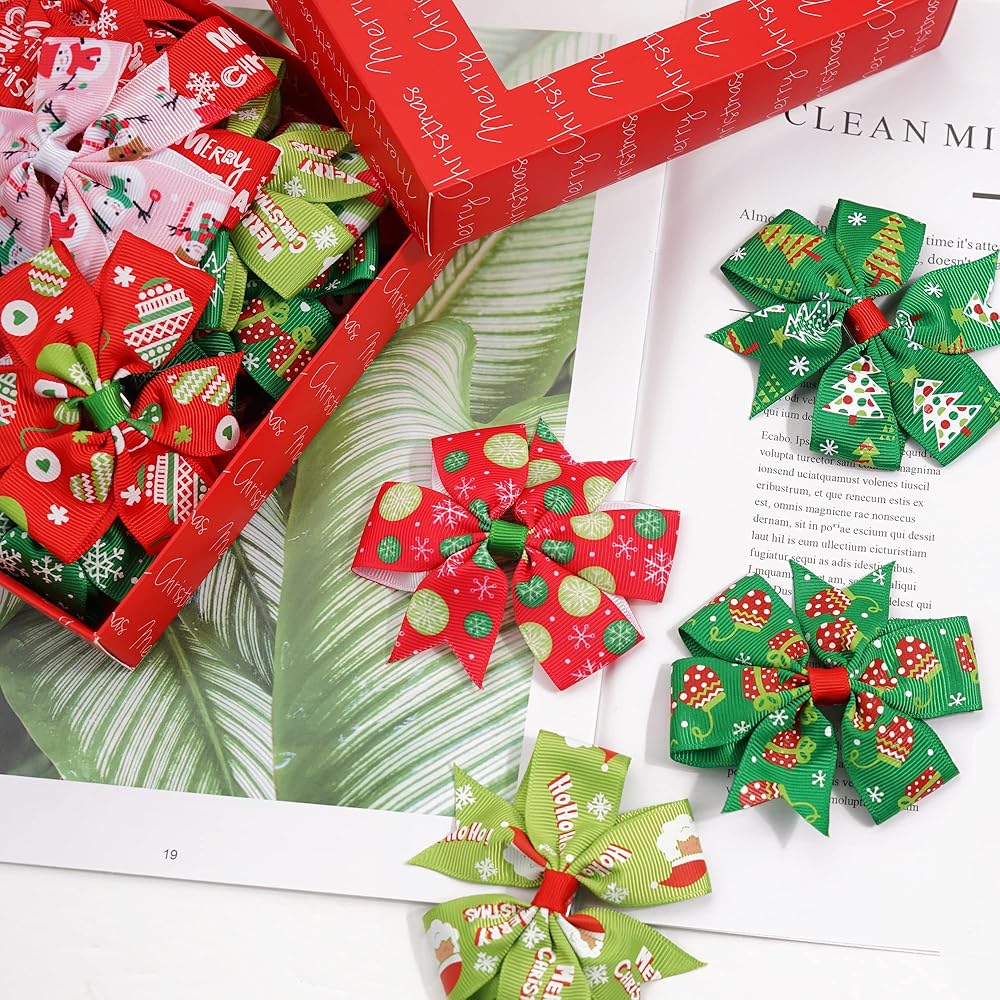 • هدية عيد الميلاد الرائعة للفتيات - مشابك شعر الأطفال في عيد الميلاد هذه دائمًا في حالة جيدة. فقط أخرجهم وأرتديهم. الأنماط الجميلة والألوان الجميلة تجعل الفتيات رقيقات ولطيفات في عيد الميلاد. هدية مثالية!