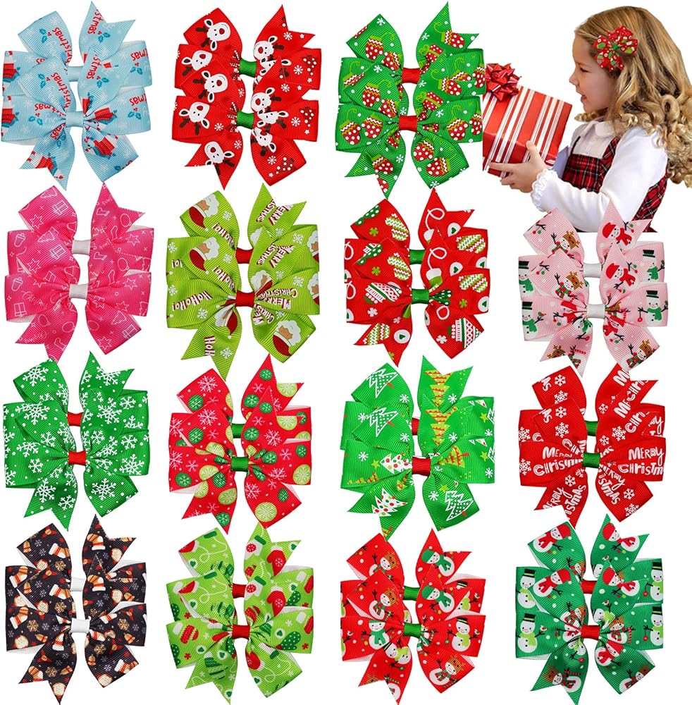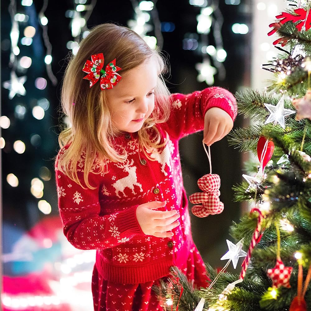 • اخلق إحساسًا بالكريسماس - مجموعة من فيونكات الشعر الجميلة المصممة خصيصًا لعيد الميلاد والتي تتميز بسانتا والأيائل ورجل الثلج وأكثر من ذلك، تكمل فيونكات شعر العطلات هذه ملابس أي طفل لأجواء عيد الميلاد.