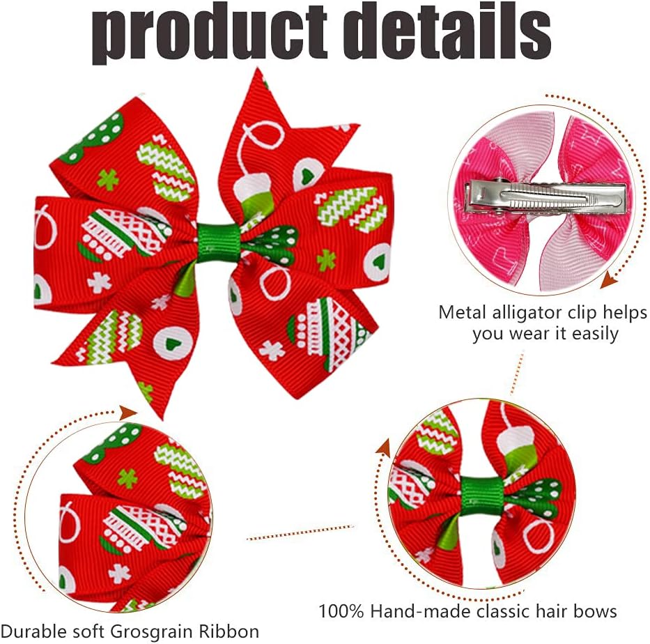 • خامة عالية الجودة - يبلغ مقاس ربطات شعر الفتيات حوالي 8.25 سم، وهي مصنوعة من مواد شريط الحرير المضلع بنمط عيد الميلاد. تضيف الأقواس البوتيكية المصنوعة يدويًا عالية الجودة جاذبية لعيد الميلاد الخاص بفتياتك.