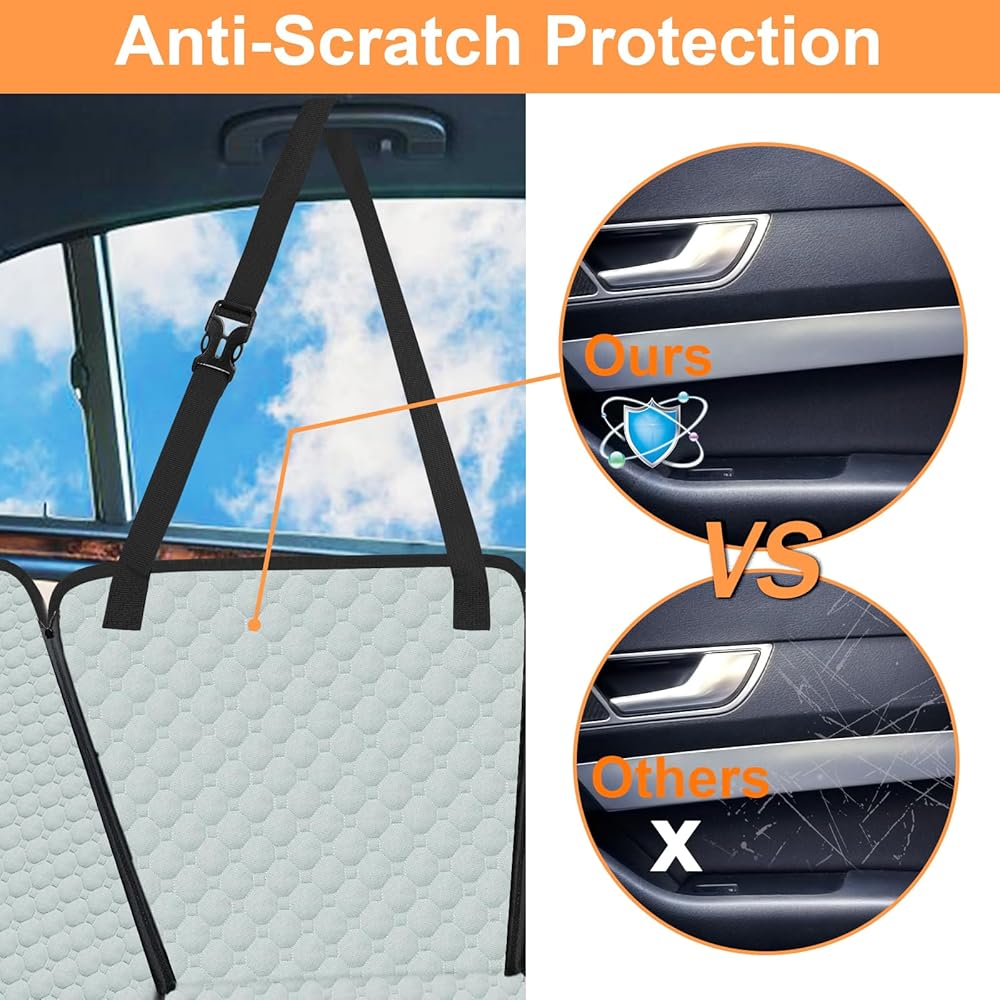 🐶Anti-Scratch Protection for Door – Still worried about the claw marks on the side door by your furry friend? Compared to other dog car blanket with very short side protection, the seat protector for dogs features 2 extended side flaps to prevent your beloved vehicle from scraping and biting. Besides, the height of the car dog cover back seat side wings is specially designed NOT to cover the windows, making your dog hang its face out the window and enjoy the fresh air.