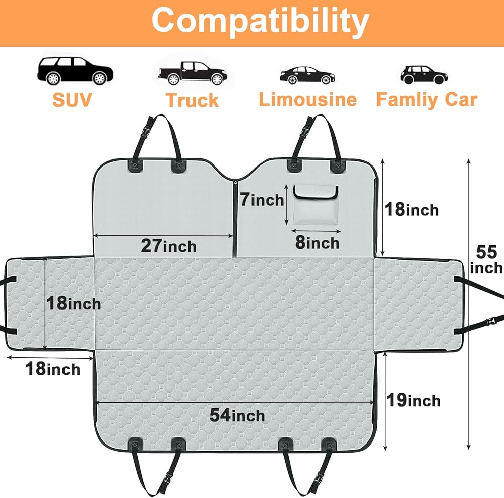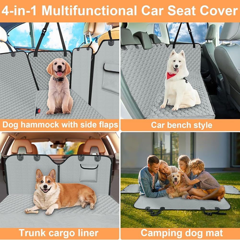 🐕4-in-1 Multifunctional – The pet car cover back seat protector is designed not only as a dog hammock with side wings, but also as a bench car seat cover protector, or a trunk cargo liner. When taken off the car and unfold flat, this dog seat cover for back seat can be transformed into a camping mat, allowing your family and friends and lovely pets to share the sunshine and have a picnic together. Enjoy the travel time with this multi-purpose dog backseat cover. Gifts for a new car owner.