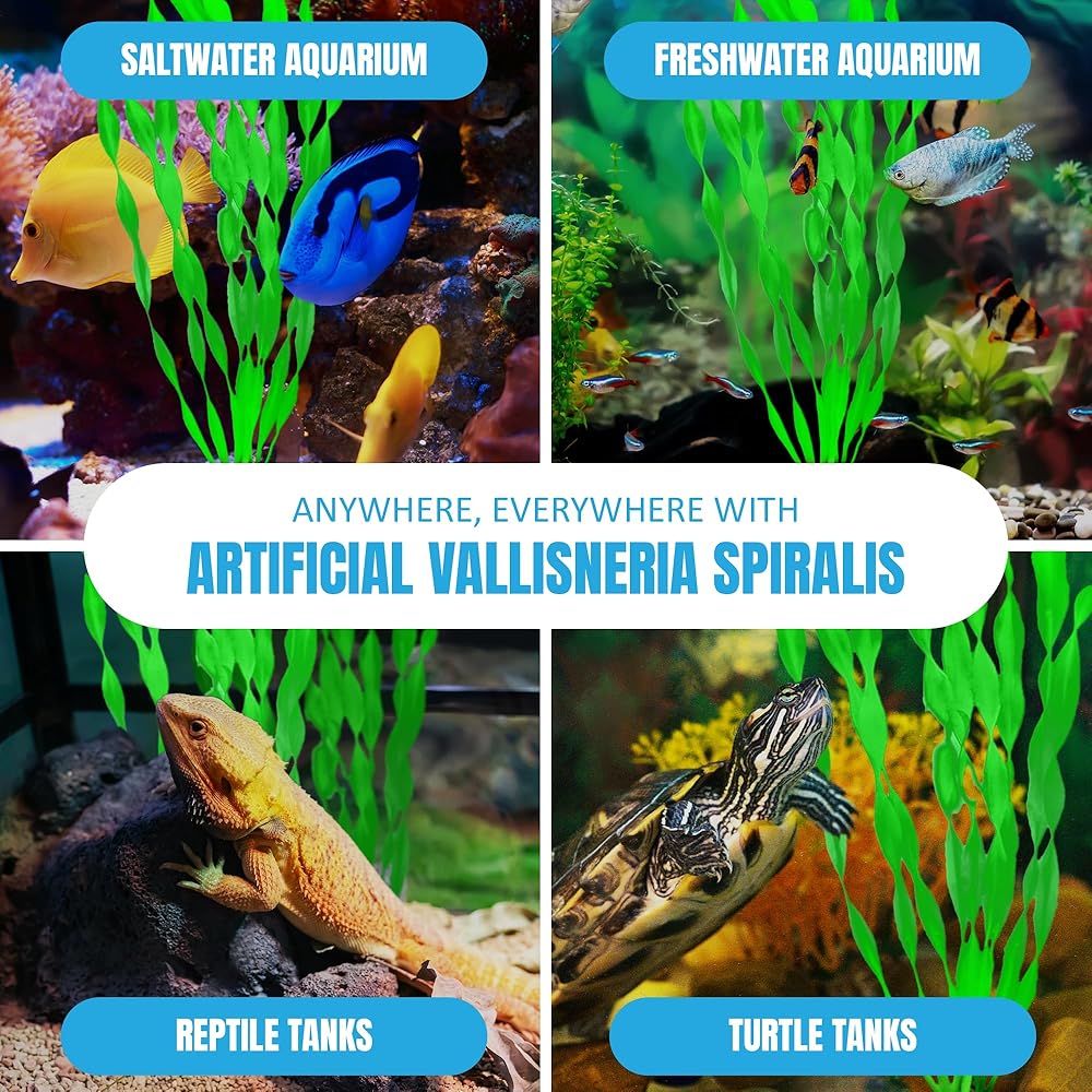 نبات فاليسنيريا سبيراليس من جور الاصطناعي، ديكور حوض السمك، خلق غابة مائية، صيد حب استكشاف الخضراء، حاجز جذاب للحيوانات الأليفة العدوانية، عبوة قيمة مثالية لدبابات المجتمع، 10 قطع