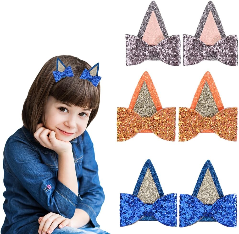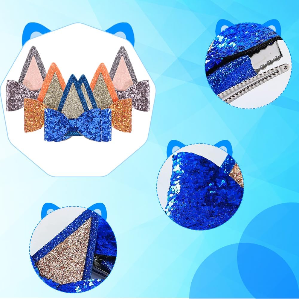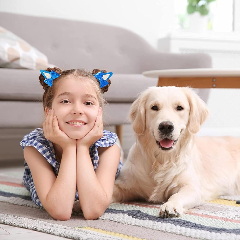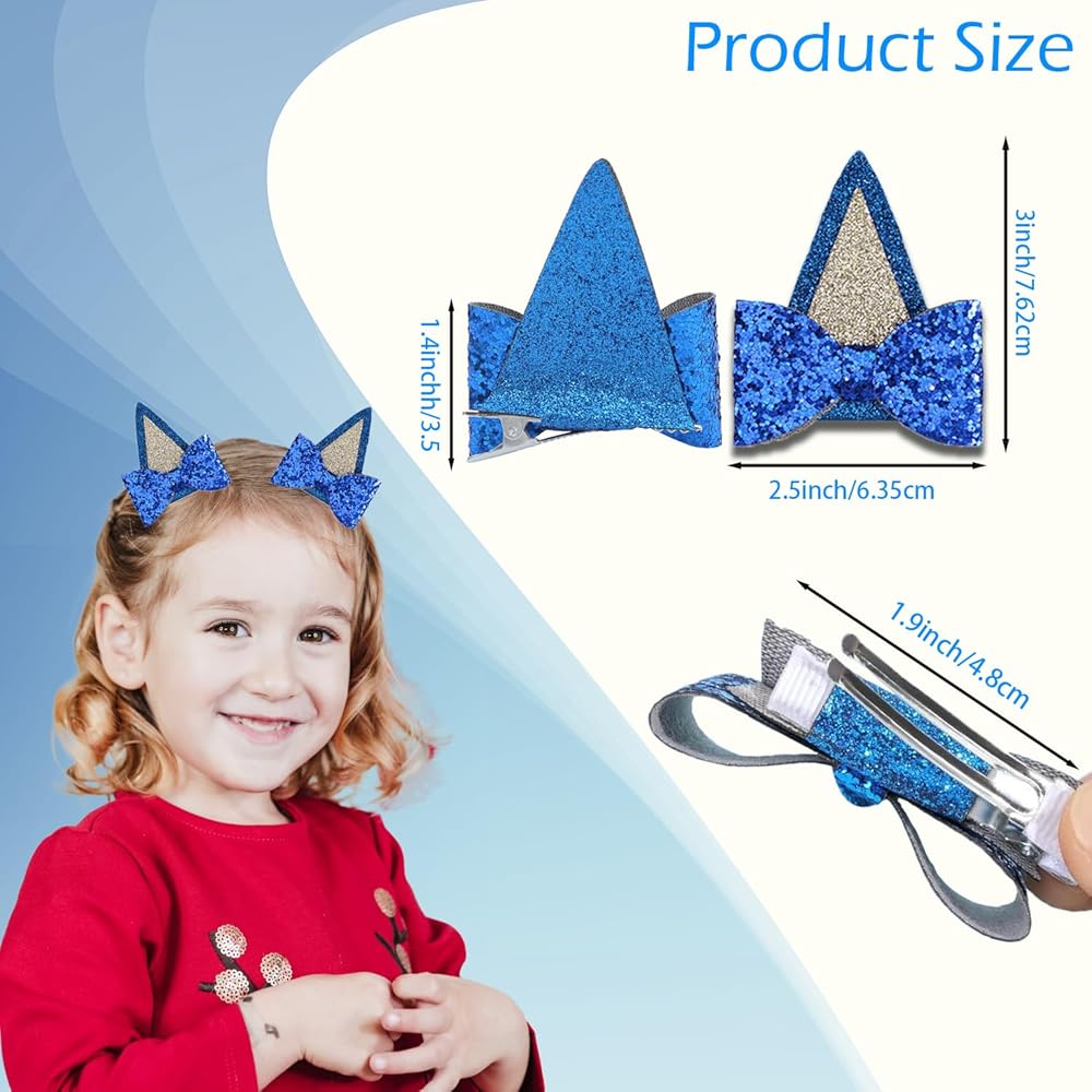 🎁【High Quality】 The bluey hair bows are made of high-quality Glitter material. In a dynamic state, the dog ear hair clip shines and is very cute and playful. The bluey party supplies ears hair bow clip is covered with edge technology, which can protect hair well.
