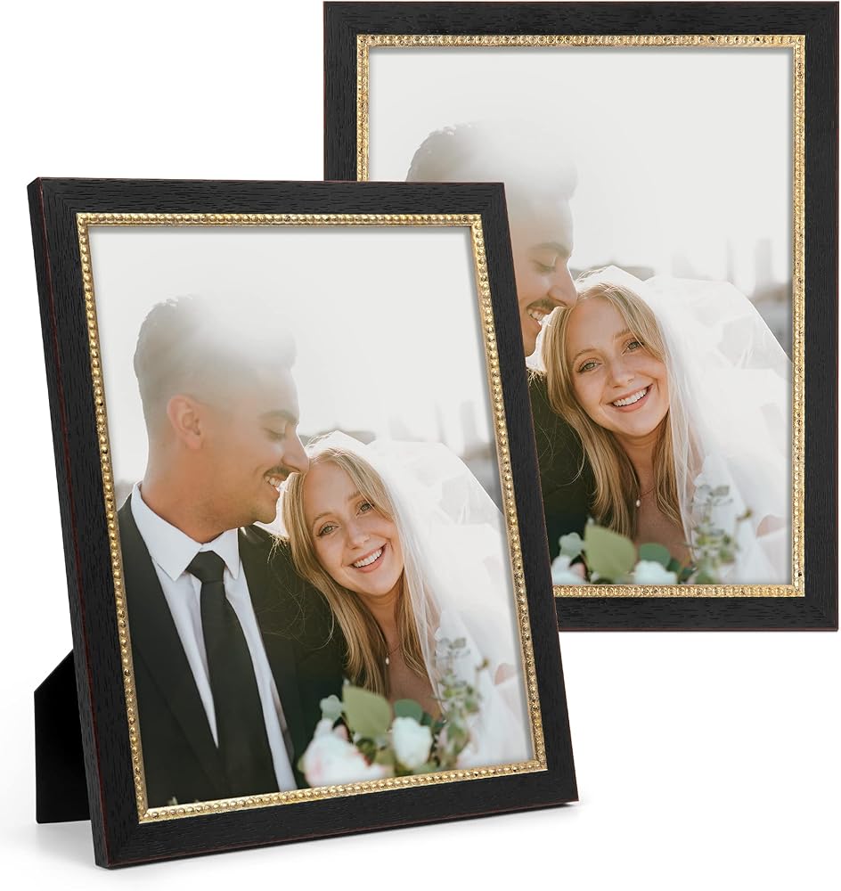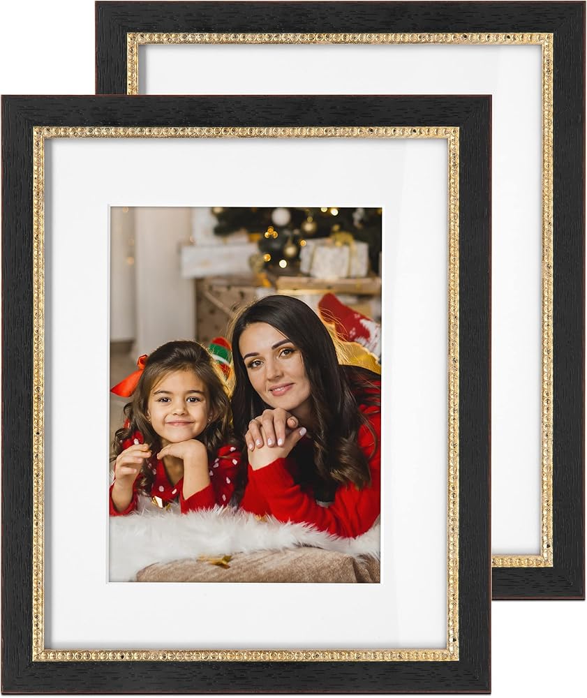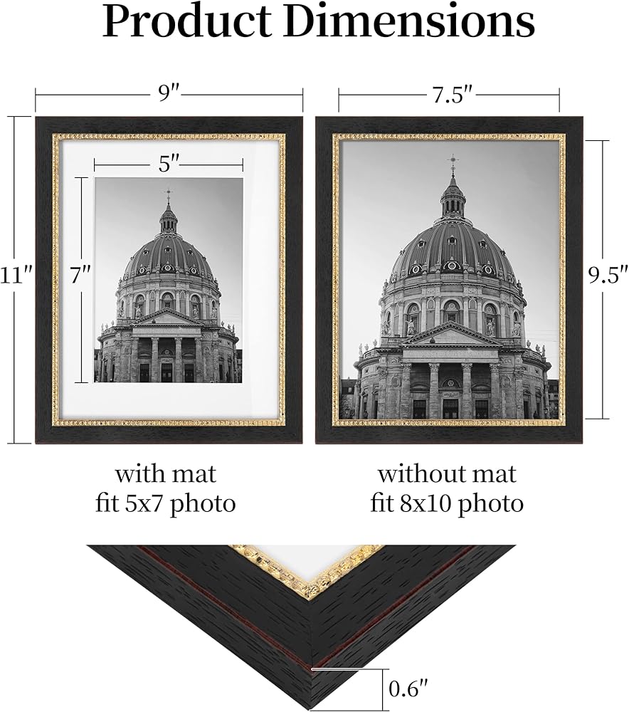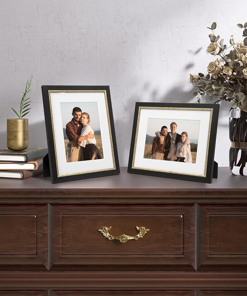 إطارات صور مقاس 8 × 10 مقاس 5 × 7 مع حصيرة، مجموعة إطار صور عتيق من الذهب الأسود مكونة من قطعتين، زخرفة مطرزة عتيقة كلاسيكية على الحائط للتعليق على الطاولة، هدية زفاف عائلية للتخرج