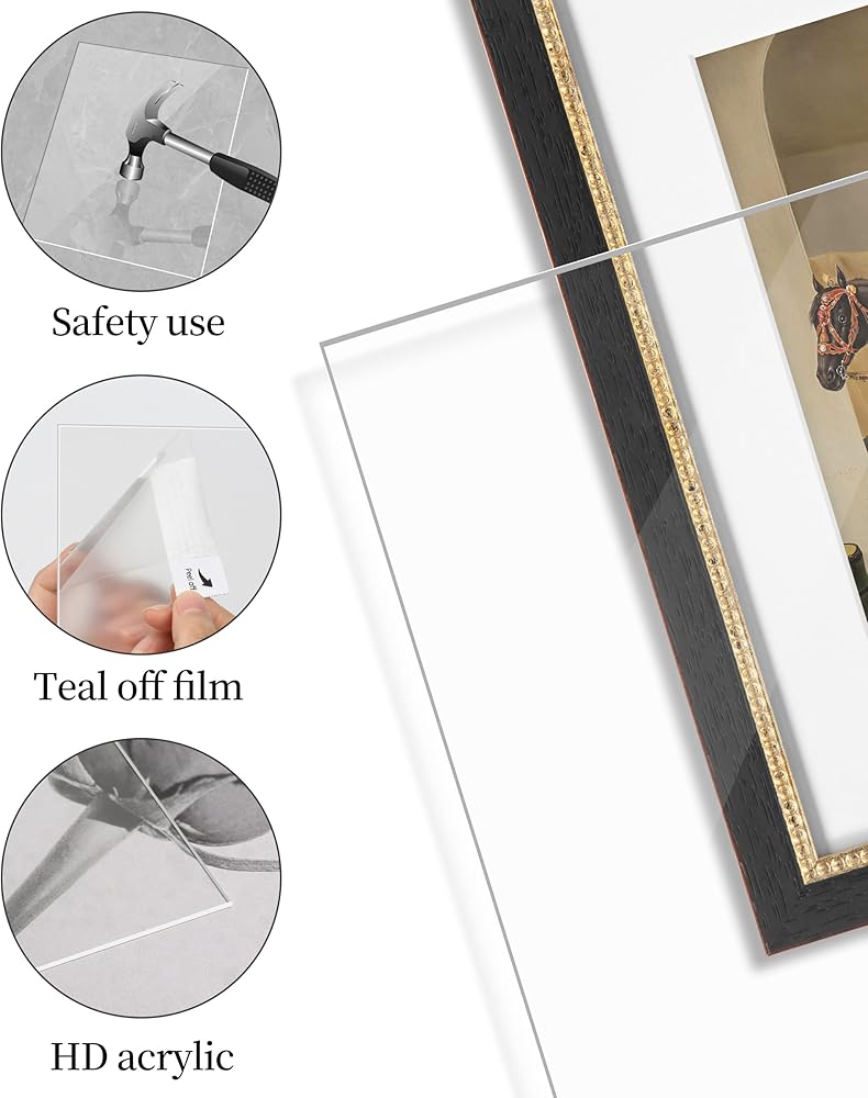 【الاستخدام الآمن】الطبقة الأمامية من الأكريليك عالية الدقة أخف وزنًا وأكثر أمانًا من الزجاج ولكنها تتمتع بمظهر يشبه الزجاج. تحتوي كل طبقة على طبقة واقية على الوجهين، يرجى تمزيقها قبل تثبيت الصورة.