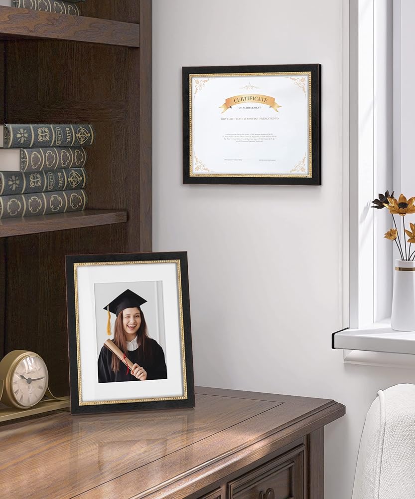 【إطار دبلوم عتيق】مقاس 8.5 × 11 مثالي للدبلوم أو الشهادة، حبيبات الخشب الأسود المزينة بزخرفة مطرزة بخط ذهبي معتق تجعلها أنيقة ولكن أيضًا بمظهر كلاسيكي.