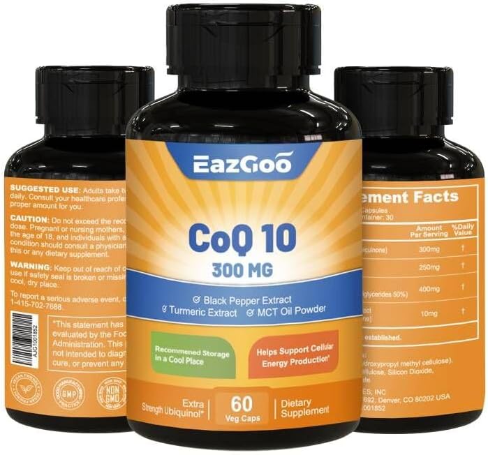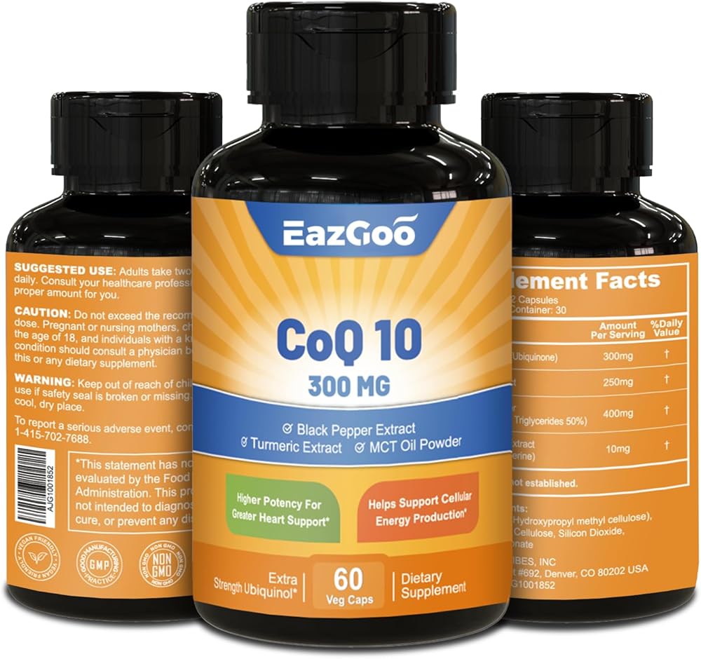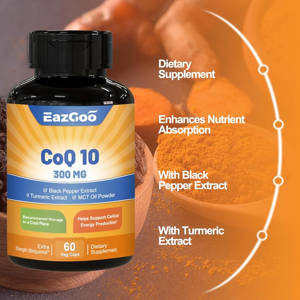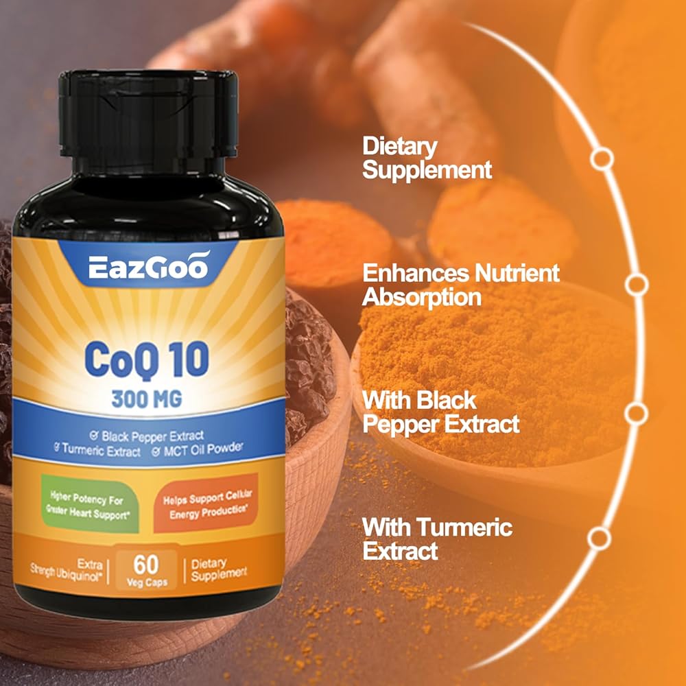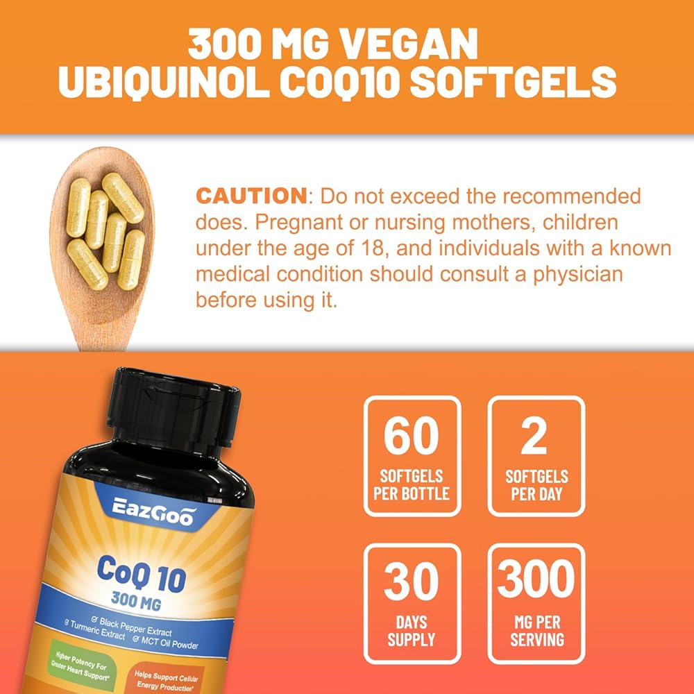 كبسولات هلامية 300 ملغ من CoQ10: يوفر مكمل Eazgoo Coenzyme Q10 300 ملغ لكل كبسولة لمدة 30 يومًا، ويساعد قلبك وجسمك على الحصول على مستويات Co Q10 الطبيعية التي ستستنفد بشكل طبيعي مع تقدم العمر.