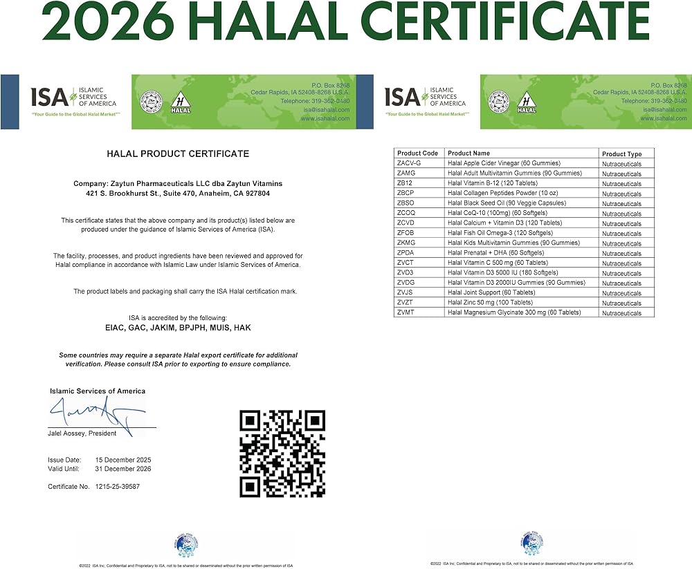 CERTIFIED & PREMIUM QUALITY: Zaytun Vitamins Halal CoQ 10 are Halal Certified by the Islamic Services of America so you can rest assured these are permissible and are manufactured in GMP Certified Facilities in the USA with top quality premium ingredients.