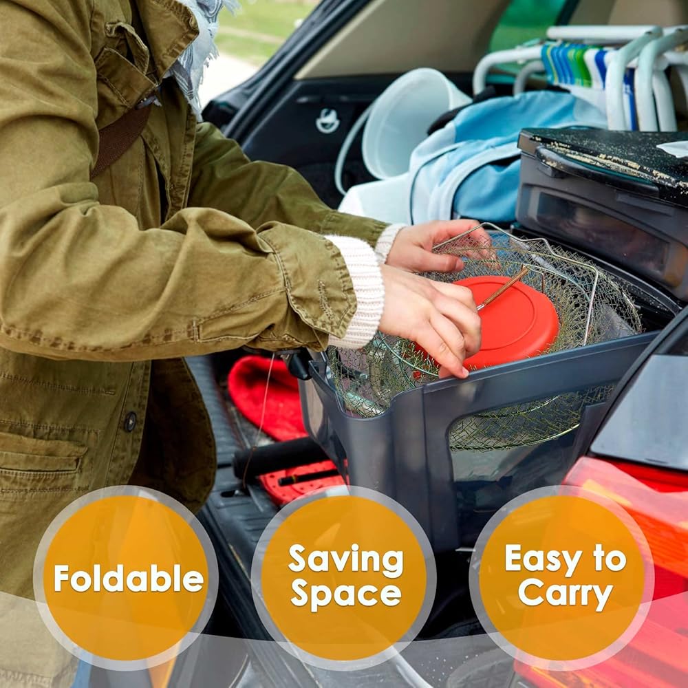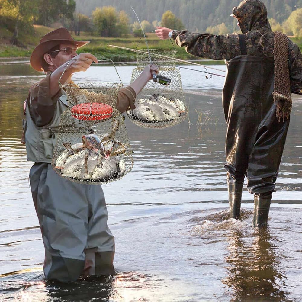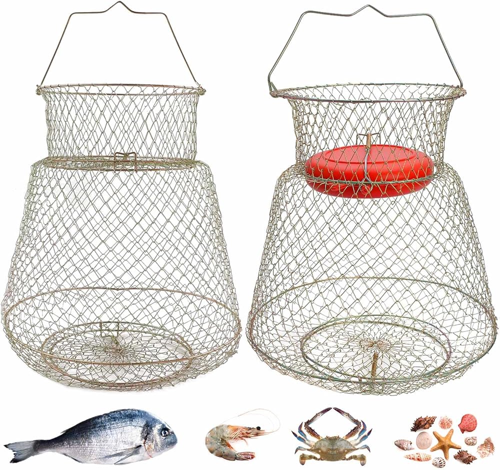 seloom 2PCS سلة الأسماك الأسلاك الفولاذية المجلفنة، سلة جراد البحر الأسماك القابلة للطي، قفص سلة الصيد المحمولة للأسماك في الهواء الطلق، سلال الأسماك المحمولة القابلة للطي ملحقات الصيد، الذهب