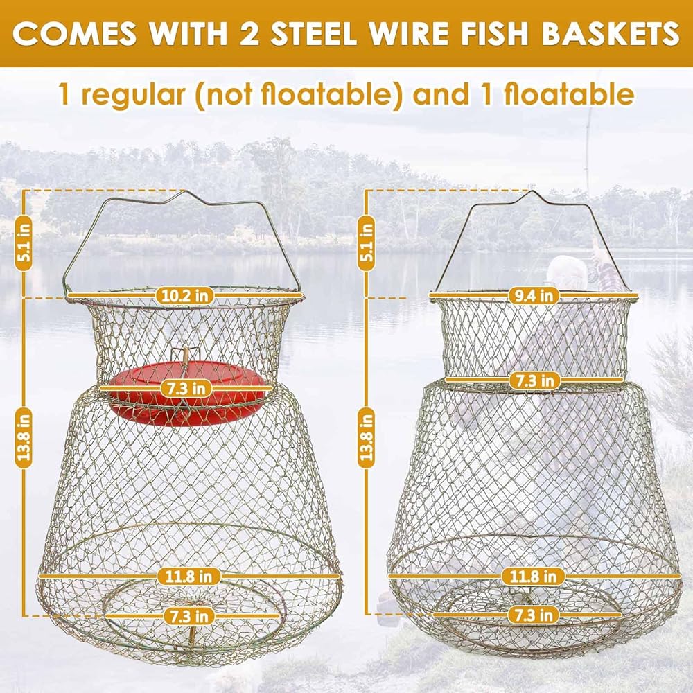 2PCS Steel Wire Fish Baskets,one regular style and one floatable style.