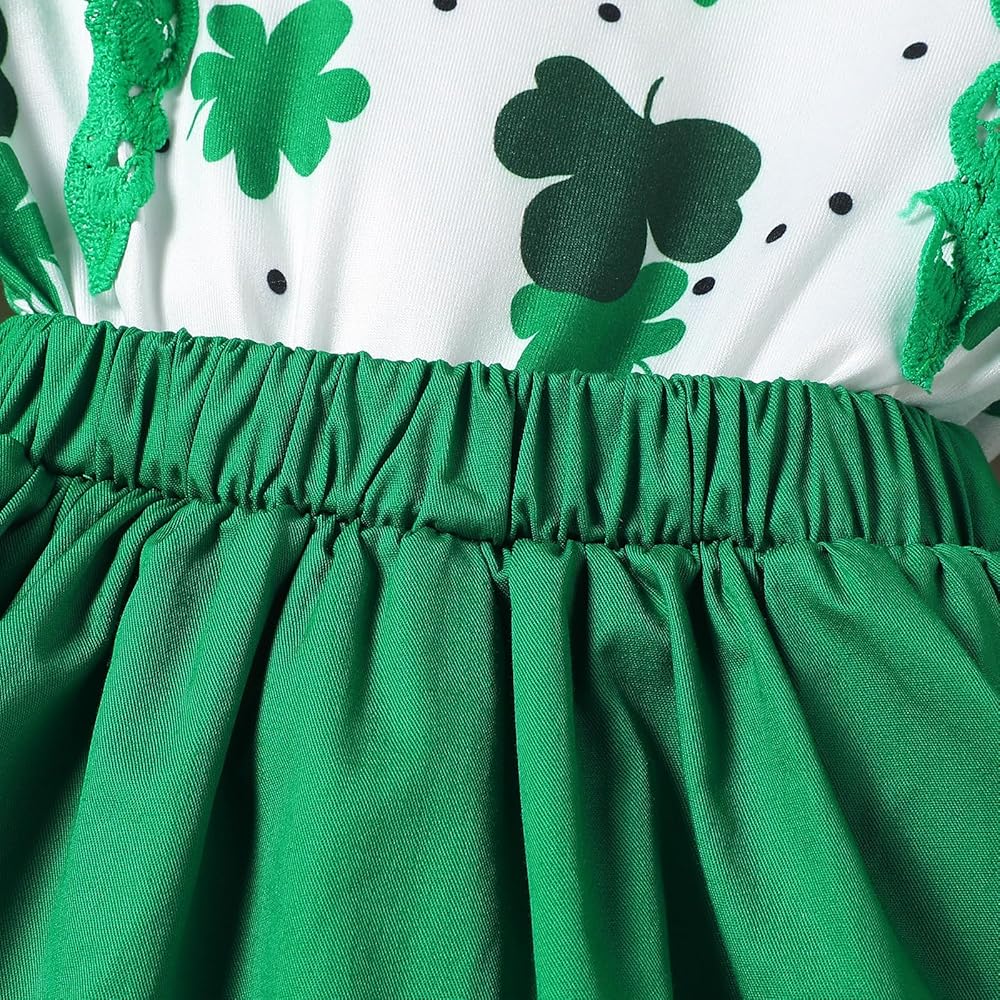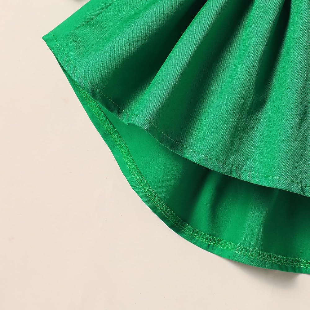 🍀التصميم - ملابس لطيفة لعيد القديس باتريك، فستان فتاة لطيف من قطعة واحدة، تصميم مكشكش من الدانتيل، فساتين طويلة الأكمام، عصابة رأس رائعة متطابقة، طباعة البرسيم المحظوظ بالكامل على التنورة، رائع، يجعل فتاتك أكثر جاذبية في المهرجانات.