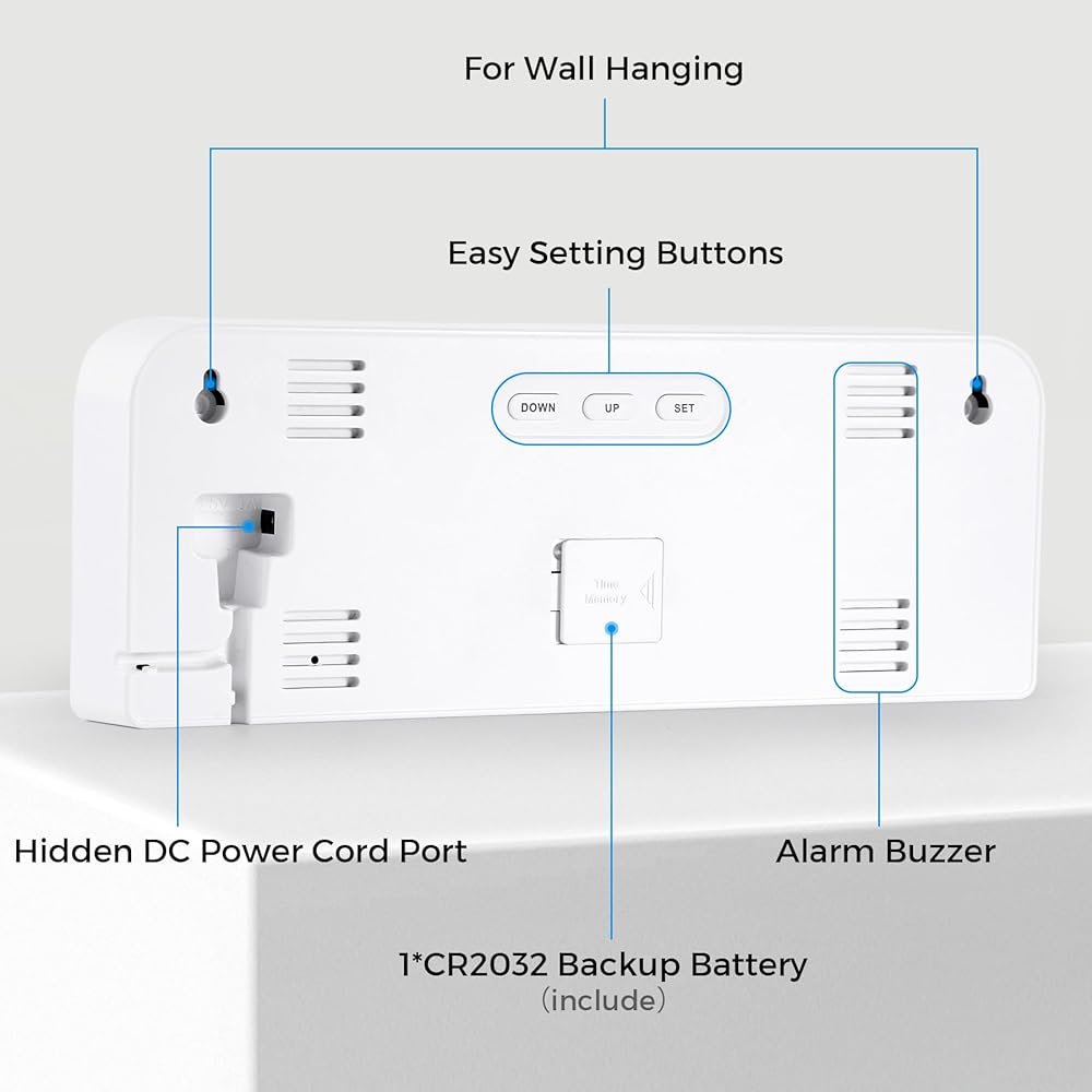 وظيفة ذاكرة البطارية - ***لا يمكن عرض ساعة LED إلا عند توصيلها بالكهرباء*** مجهزة ببطارية زر لتوفير وظيفة الذاكرة. عند فصل الساعة عن مصدر طاقة USB، يمكنها الاستمرار في الاحتفاظ ببيانات الساعة.