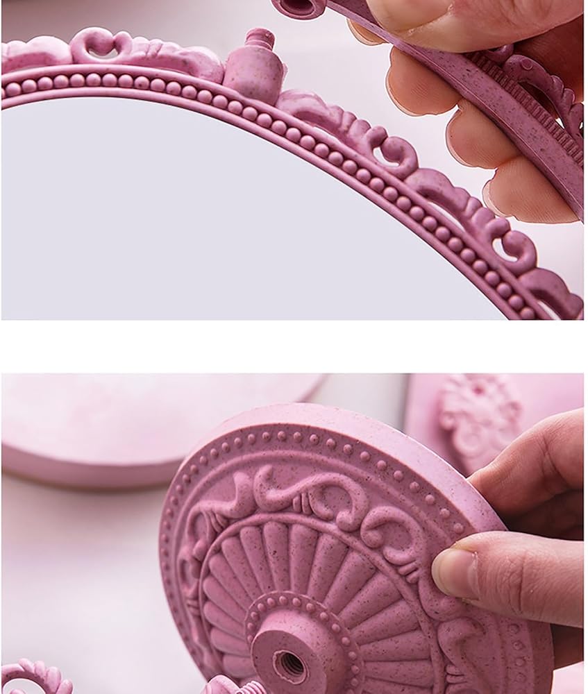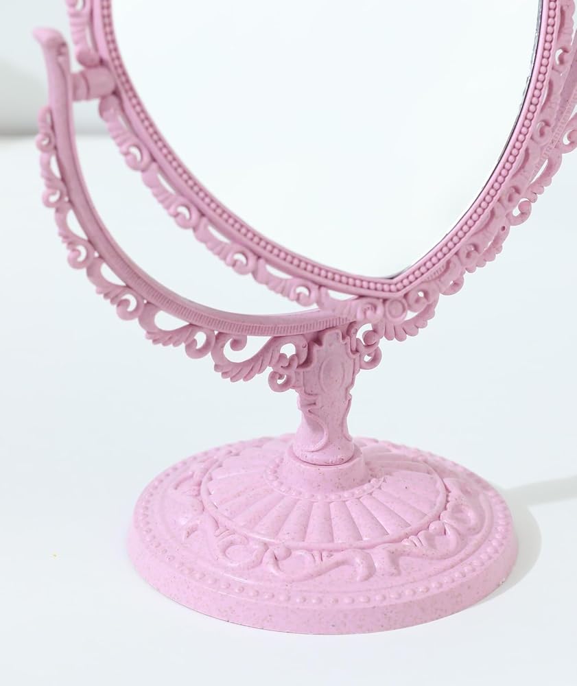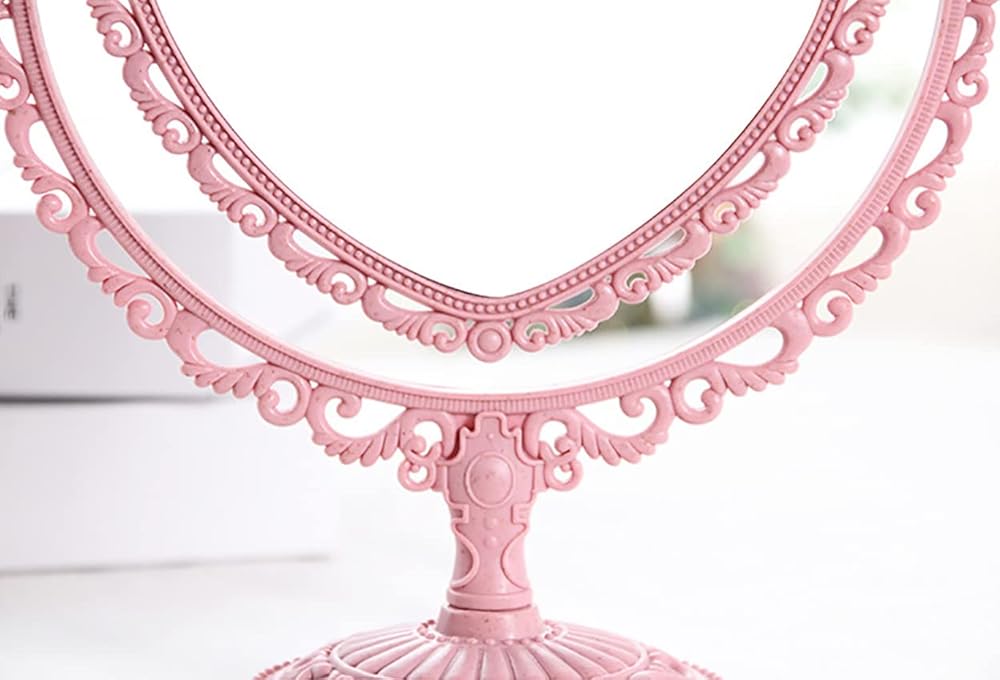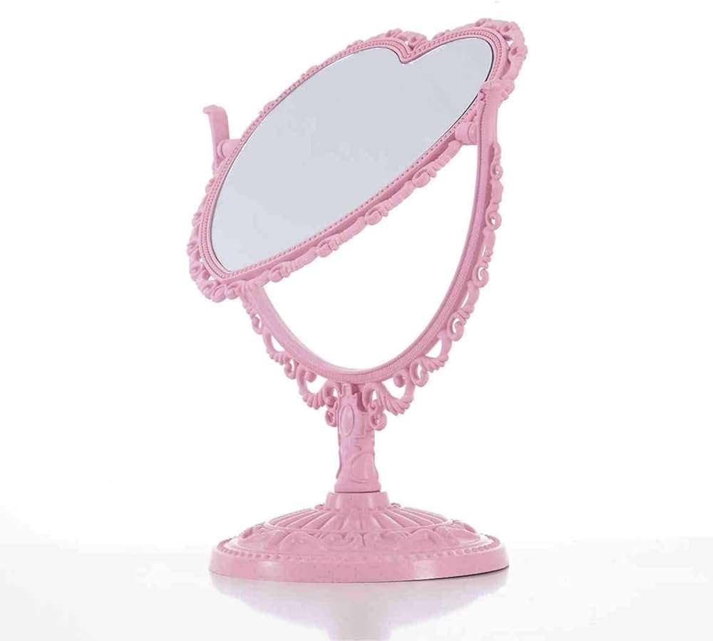 *Heart Shaped Mirror Double Sides room decor. *Tabletop Vanity Mirror DoubleSided Magnifying Makeup Mirror with 360 Degree Rotation.It is both a mirror and an ornament, which not only can illuminate your own beauty, but also decorate the house,very cute and attractive. *he size of this rotatable dresser mirror is 8 x 9.8 x 5 inches, Glass size is 6 x 5 inches.With nonslip bottom designed, more stably to stand which is suitable for your dressing table. *It comes with high definition 3X magnification on one side and regular on the other side.base is detachable, convenient for storage and carrying,It is suitable for office home or travel makeup shaving, dressing,etc. *The mirror is fragile. Please understand if it is damaged on the way. Remember to contact us in time to solve all your troubles. I believe this must be a happy shopping for you.