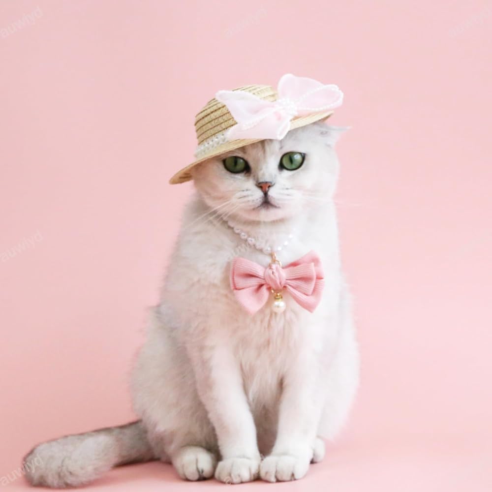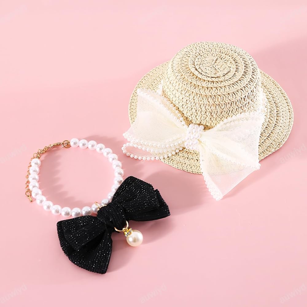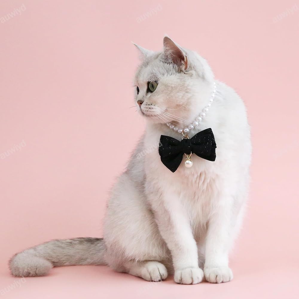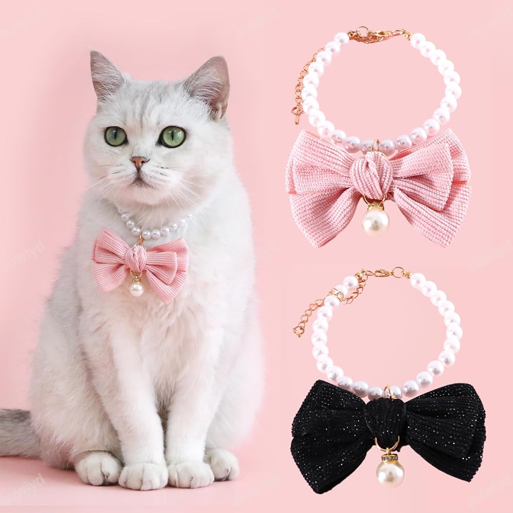 🎀Beautiful Pet Collar: You will get 2 pcs. This stylish collar, adorned with faux pearls and a big bow decoration, adds a sweet and lovely touch to your pet's appearance.