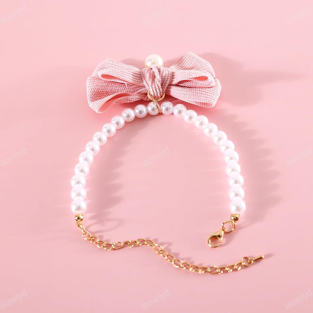 auwiyd 2 جهاز كمبيوتر شخصى اللؤلؤ طوق الكلب قلادة قابل للتعديل ربطة عنق طوق ربطة العنق مع اللؤلؤ فو الحيوانات الأليفة الملحقات لحفل زفاف عيد ميلاد القوس لطيف الحيوانات الأليفة دائرة الرقبة (متوسطة)