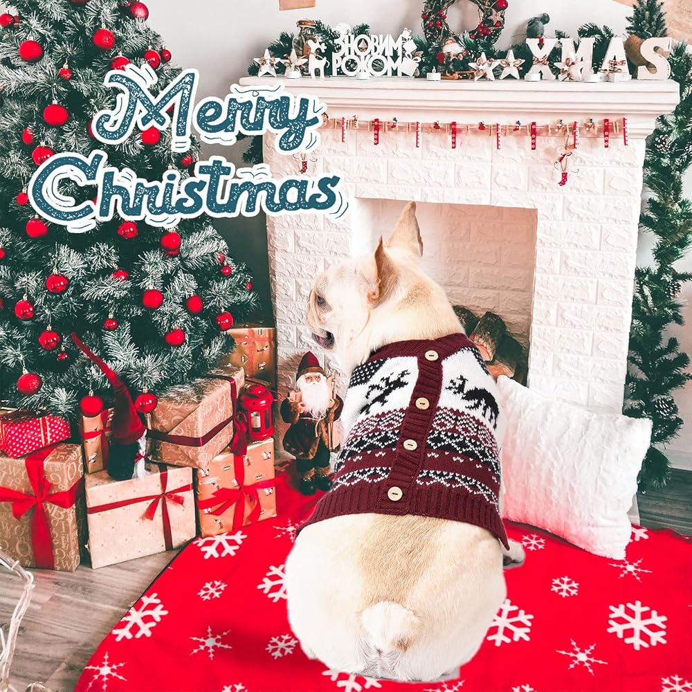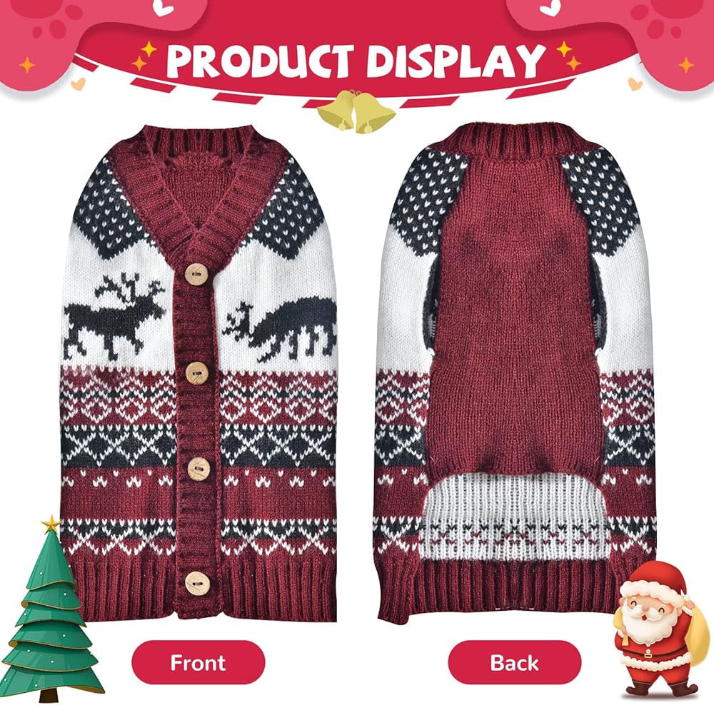 🐾مادة ناعمة 🐾: هذه السترة مصنوعة من مادة ألياف الأكريليك. تتميز سترة عيد الميلاد هذه بمرونة بسيطة وتمنحك ملمسًا ناعمًا بشكل خاص. ناعم ومريح. حافظ على جرو طفلك دافئًا ومرتاحًا في أيام الشتاء الباردة. نوصي بالغسيل اليدوي العادي، وتبييض الكلور غير المناسب ونقعه لفترة طويلة. يمكن غسله في الغسالة مع لون مماثل في الماء البارد والتجفيف بالمجفف.
