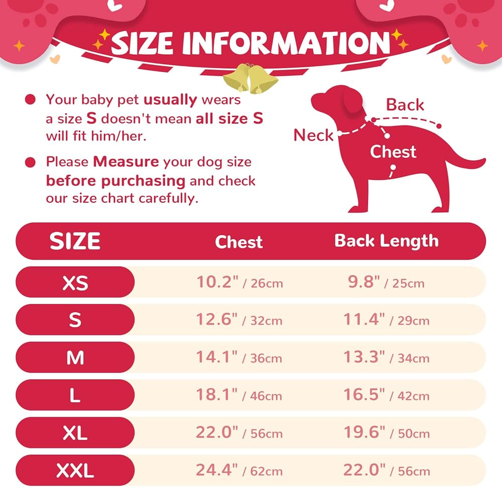 🐾حول المقاس🐾: عادةً ما يرتدي حيوانك الأليف ملابس صغيرة الحجم ولكن هذا لا يعني أن جميع المقاسات S تناسبه. يرجى قياس محيط صدر كلبك ومحيط رقبته وطول ظهره قبل تقديم الطلب. من الأفضل اختر مقاس السترة بناءً على صدر حيوانك الأليف. شكرًا.