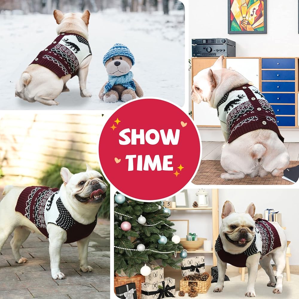 🐾 سترة كلب مخططة باللون الأحمر الوردي الرائعة 🐾: سترة الكلب مصممة بأنماط مخططة ملونة، مليئة بأجواء الشتاء ورأس السنة الجديدة، مثالية لهدايا العام الجديد لأصدقائك ذوي الفراء. سترة الكلاب هذه هي بلوفر يمكنك ارتداؤه بسرعة وسهولة على كلبك ورأسك بالخارج - لا تقضي دقائق في المعاناة من أجل ارتدائه. النسيج القابل للتمدد لا يعيق حركة الحيوانات الأليفة ويجعل جروك مريحًا.