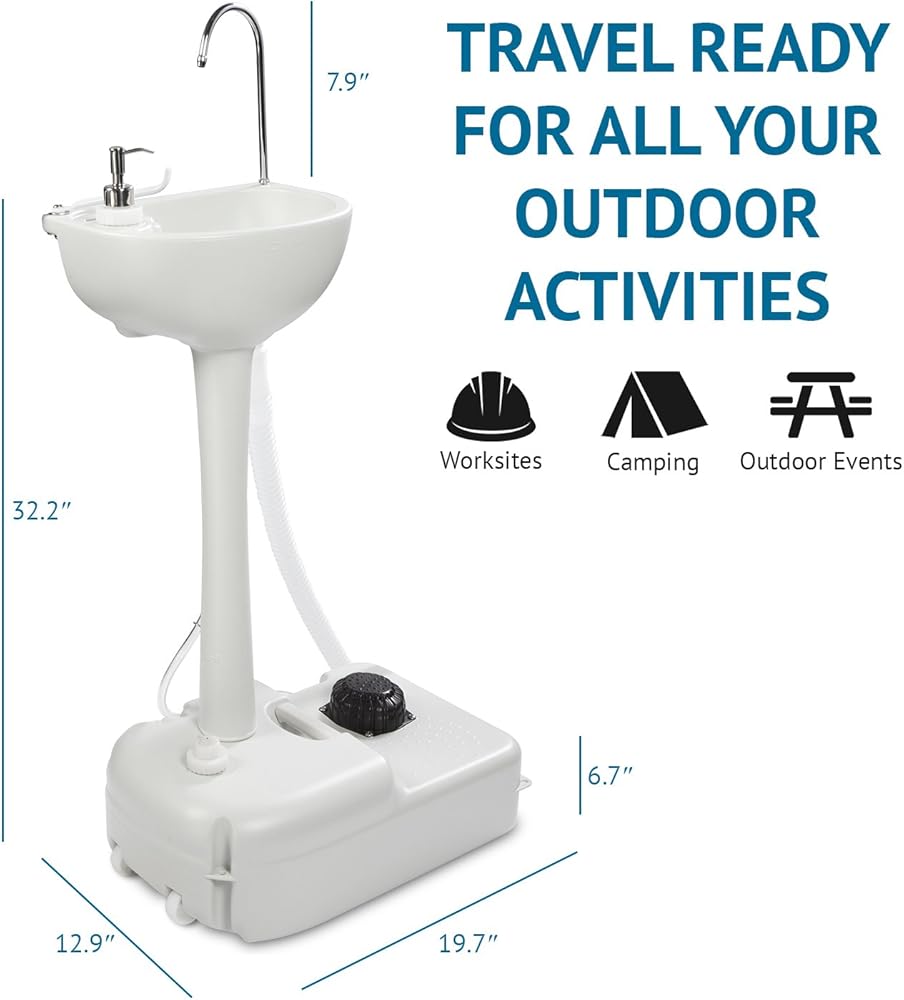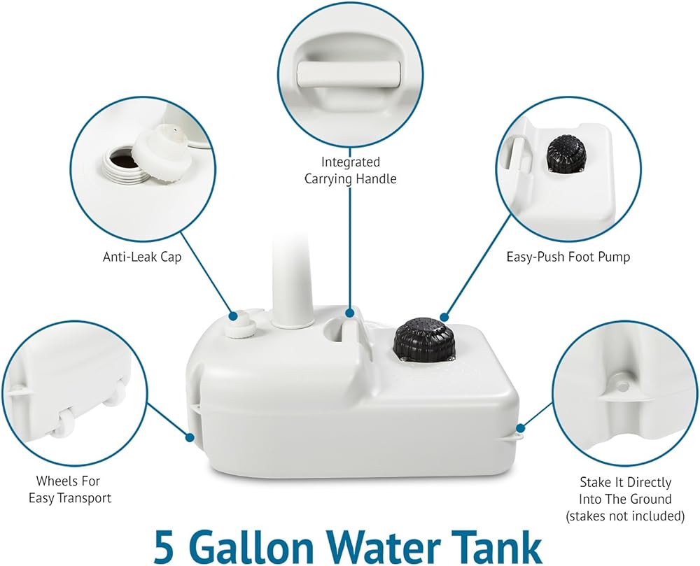 حوض خارجي محمول - تتميز محطة التنظيف متعددة الأغراض بحوض كبير بقاعدة وخزان مياه سعة 19 لتر لحفلات الفناء الخلفي والنزهات وحفلات الشواء والمناسبات والتخييم ومواقع العمل والمشي لمسافات طويلة والصيد والأنشطة الترفيهية الأخرى