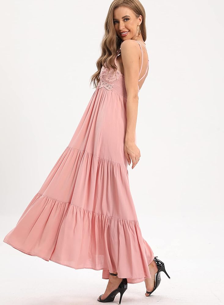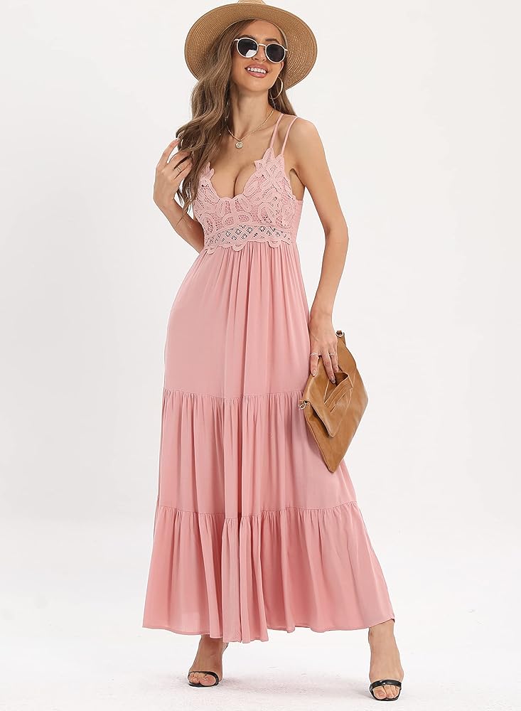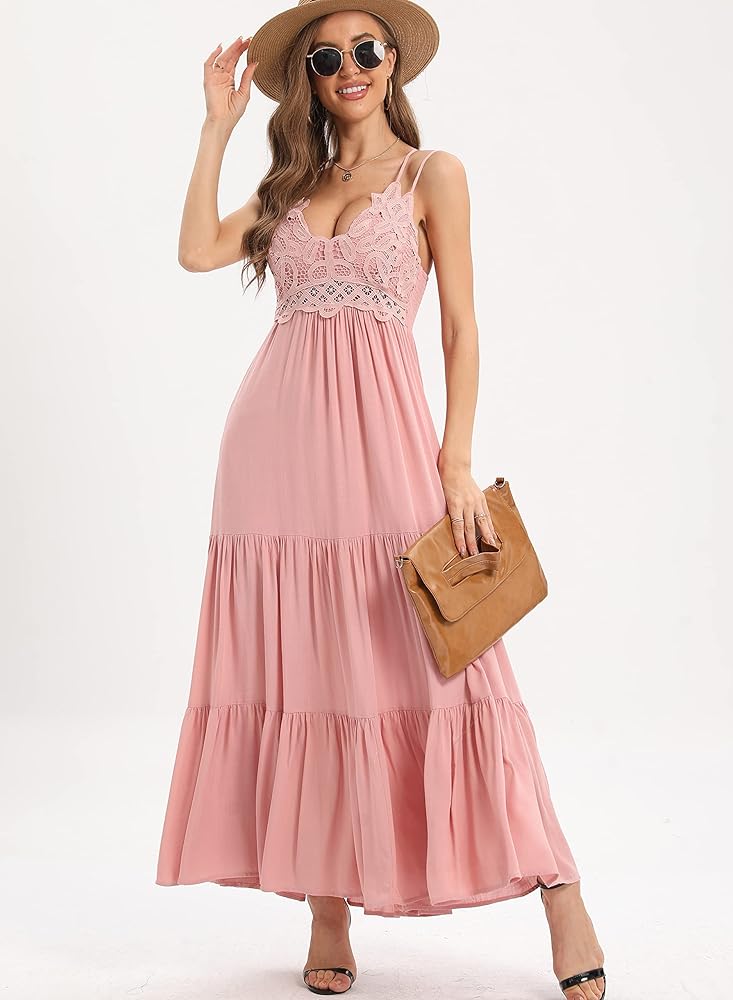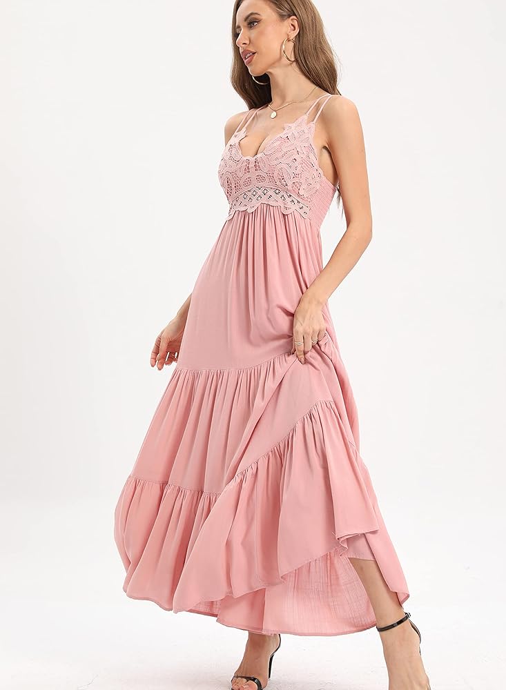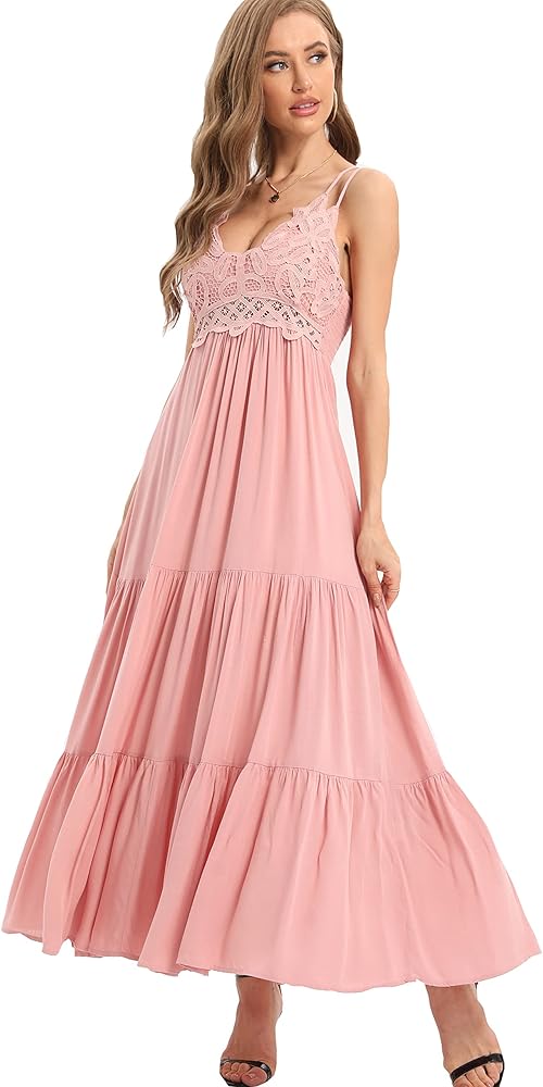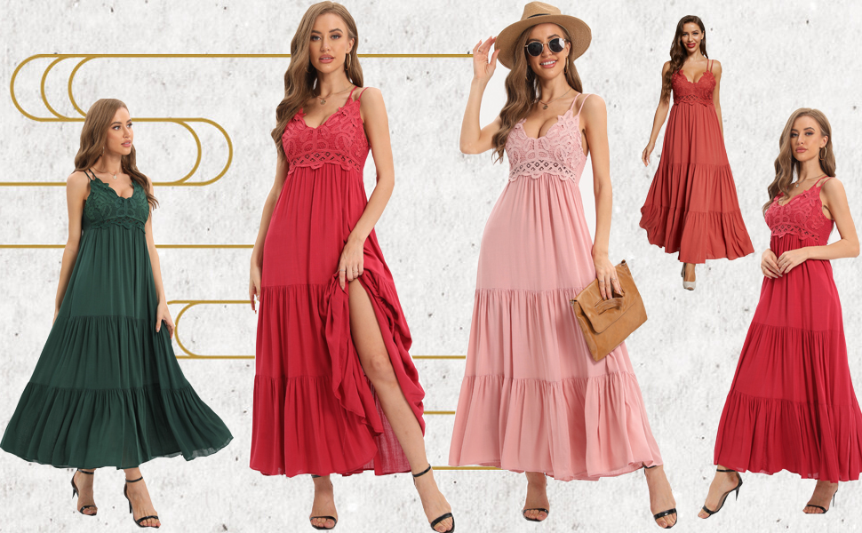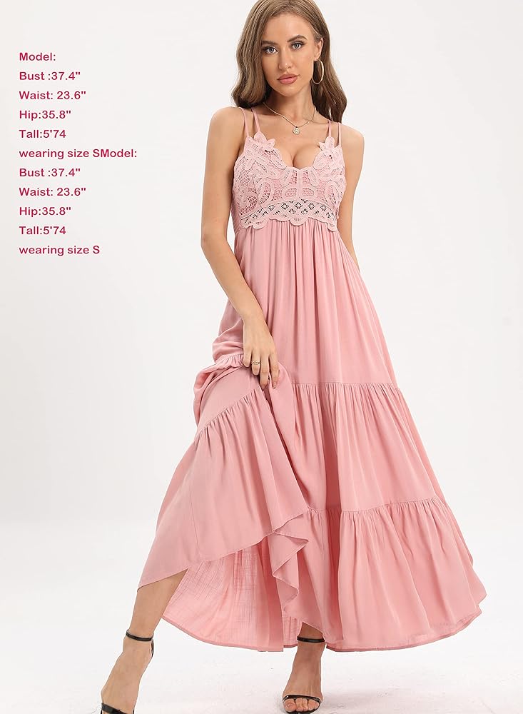 • 【فستان طويل للنساء】تصميم عصري، زهور كروشيه دانتيل ملائمة تظهر سحرك المثير وصدرك مريح، ظهر مكشكش يمكن تعديل مقاس الصدر، مناسب لحفلات استقبال المولود الجديد، رقبة على شكل حرف V، بدون أكمام، أشرطة قابلة للتعديل بدون - أحزمة كتف منزلقة، ظهر متقاطع. جسم نحيف مثير وحاشية انسيابية لمسة رومانسية مثيرة.