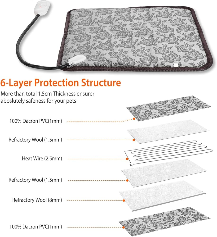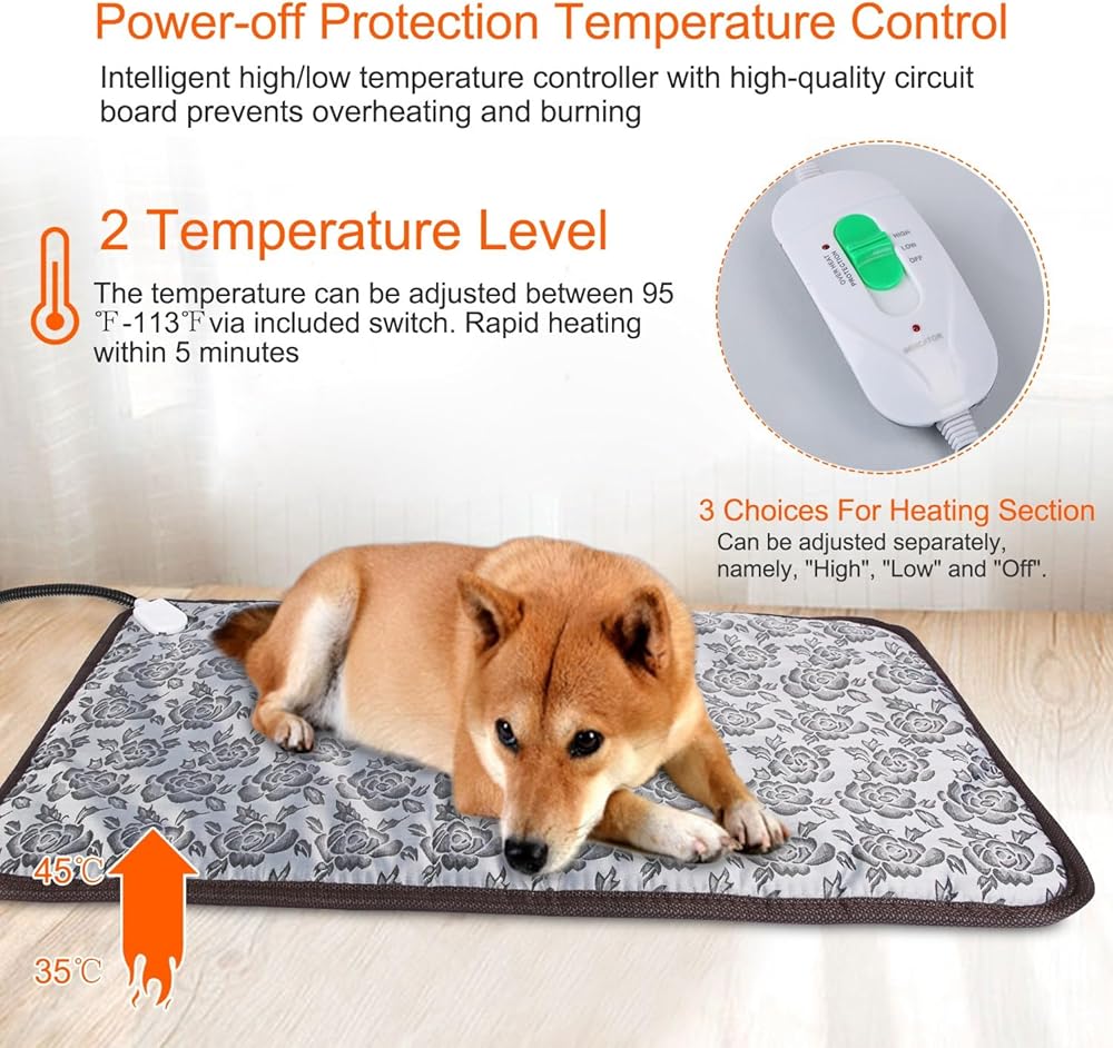 وسادة تسخين لطيفة وعالية الجودة للحيوانات الأليفة: وحدة تحكم ذكية في درجة الحرارة العالية/المنخفضة مع لوحة دوائر عالية الجودة تمنع ارتفاع درجة الحرارة والحرق (يمكن تعديل درجة الحرارة بين 95 درجة مئوية إلى 104 درجة مئوية). يمكنه تجنب ارتفاع درجة الحرارة لضمان سلامة الحيوانات الأليفة وإطالة عمر خدمة المنتج