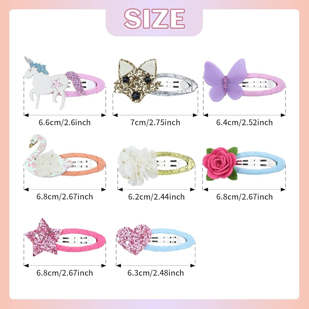 التصميم: تصميم عصري ولطيف على شكل وحيد القرن، ثعلب، فراشة، بجعة، زهرة، نجمة، قلب. بالتأكيد ستجعل بناتك رائعات ولافتة للنظر. مشابك شعر مصنوعة جيدًا تبقى ثابتة في شعر الأطفال بإحكام، ولا تنزلق.