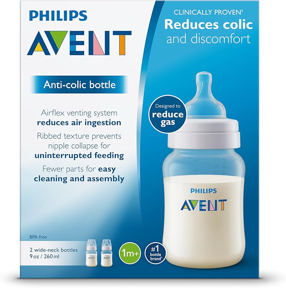 Philips Avent SCF400/17 Anti-colic baby bottle 4oz with Anti-colic baby bottle Newborn Nipple promotes the health and comfort of your baby. This BPA free bottle is proven to reduce colic and fussiness, especially at night. The unique valve integrated into the nipple flexes to allow air into the bottle, preventing vacuum build up, and preventing air into your baby's tummy. The valve on the Anti-colic baby bottle nipples also flexes to your baby's feeding rhythm so milk only flows at your baby's pace to minimize overeating and spit-up, burping and gas. The extra soft silicone nipple is available in different flow rates for babies of all ages. With few parts, rounded edges and wide neck, the bottle is easy to clean thoroughly. Ease of cleaning helps to ensure more hygienic, healthier feeding. The Anti-colic baby bottle feeding bottle works interchangeably with most of the Philips Avent range making it easier to meet your growing baby's changing needs. We recommend to use the Anti-colic baby bottle bottles only with the Anti-colic baby bottle nipples.